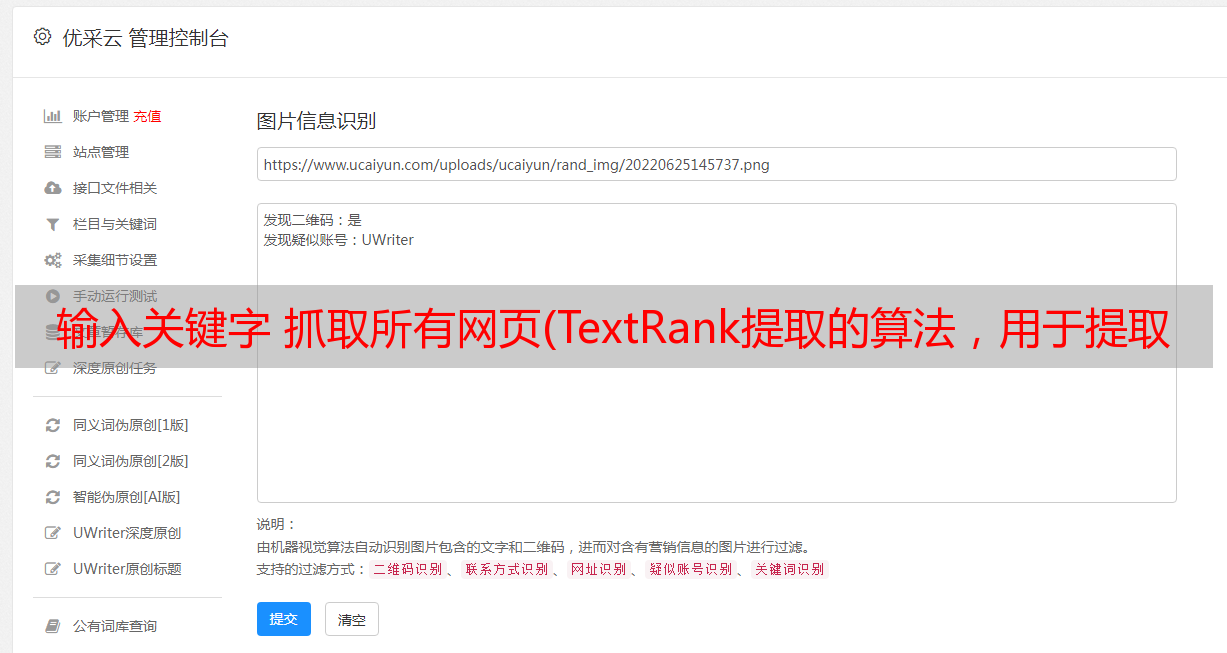 优采云 发布时间: 2021-11-23 08:01输入关键字 抓取所有网页(TextRank提取的算法,用于提取短语和自动摘要的方法)