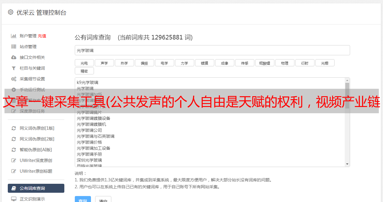 优采云 发布时间: 2021-11-23 11:09文章一键采集工具(公共发声的个人自由是天赋的权利,视频产业链这么地被关注