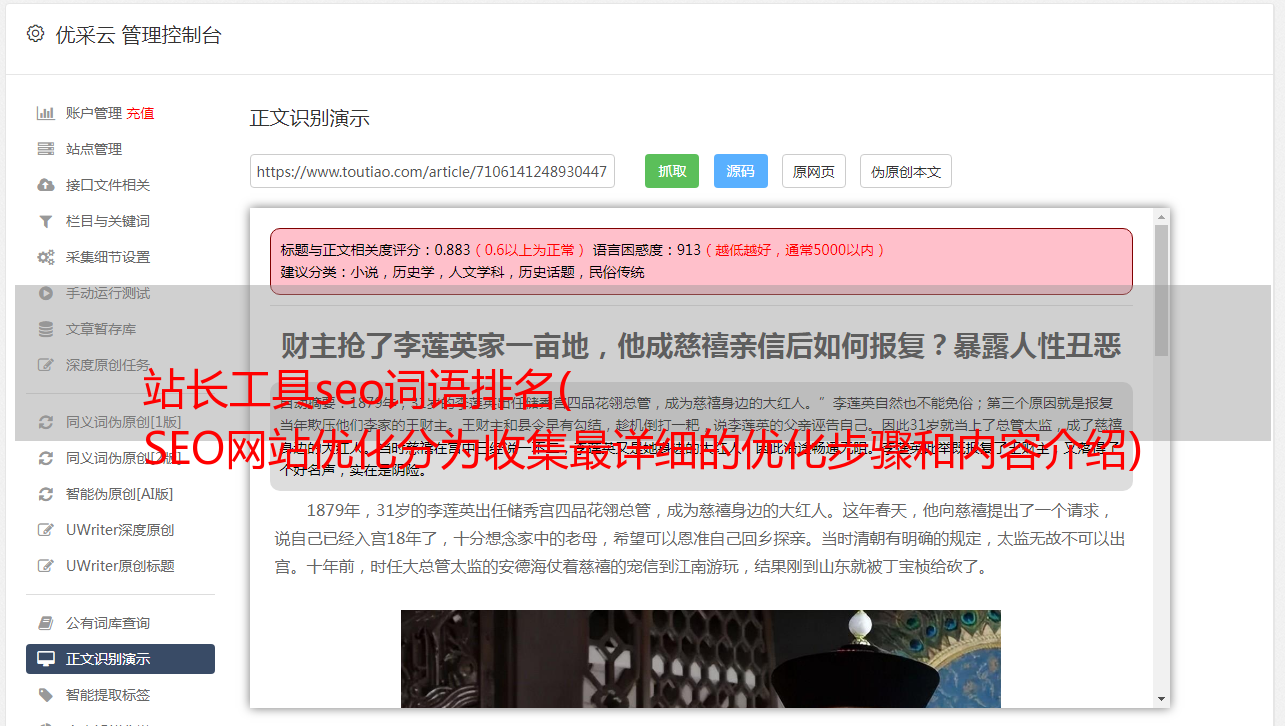 站长工具seo词语排名( SEO网站优化分为收集最详细的优化步骤和内容介绍)