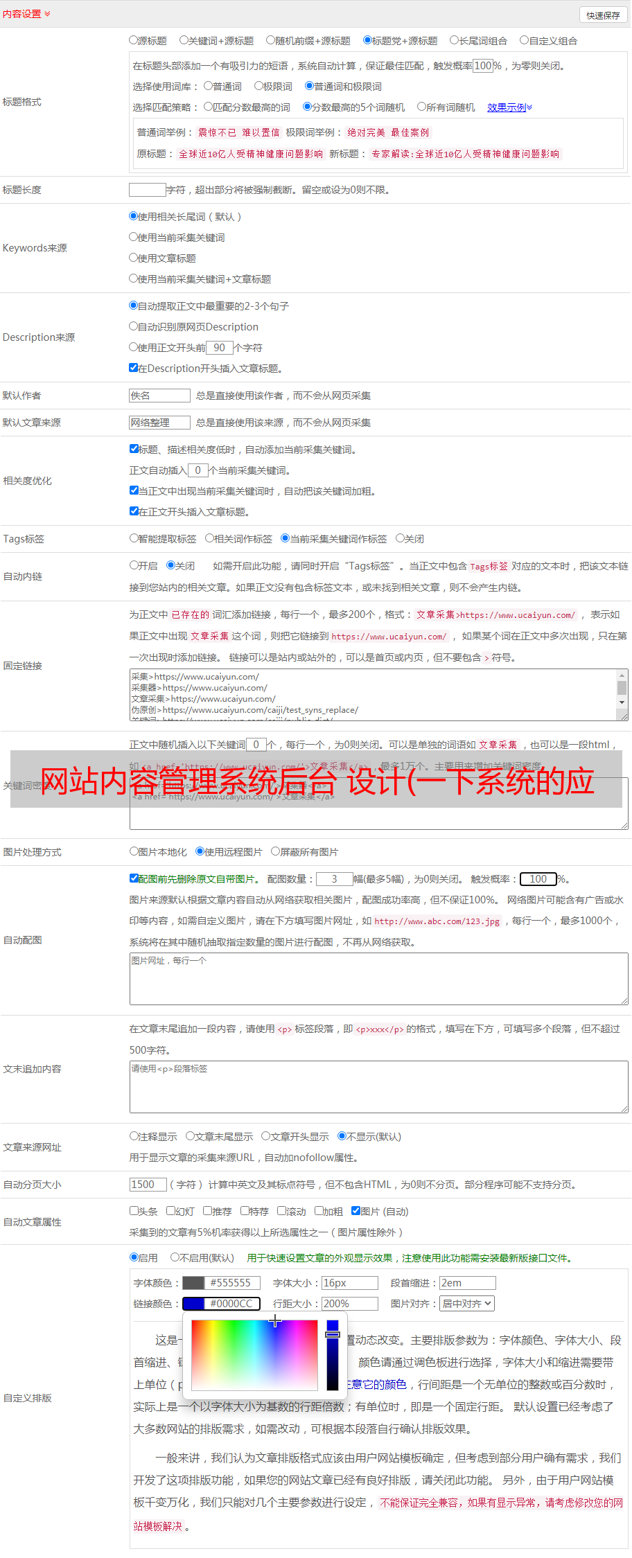 这里有个坑,如果是广告位,建议设计成手动操作,广告功能也可以说是cms;不然建议用程序自动更新,这个是给seo用的,seo以后会文章写进去,这里跳过。以手动操作操作为例,可以看下图,