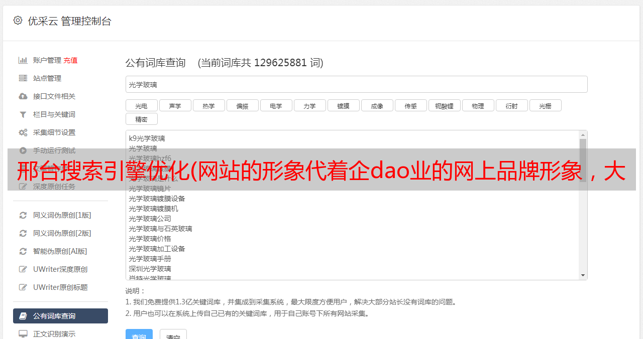 优采云 发布时间: 2021-11-24 07:06邢台搜索引擎优化(网站的形象代着企dao业的网上品牌形象,大众在网上了解)