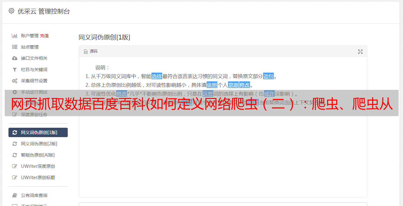 优采云 发布时间: 2021-11-24 11:05网页抓取数据百度百科(如何定义网络爬虫(二):爬虫、爬虫从哪里爬取)