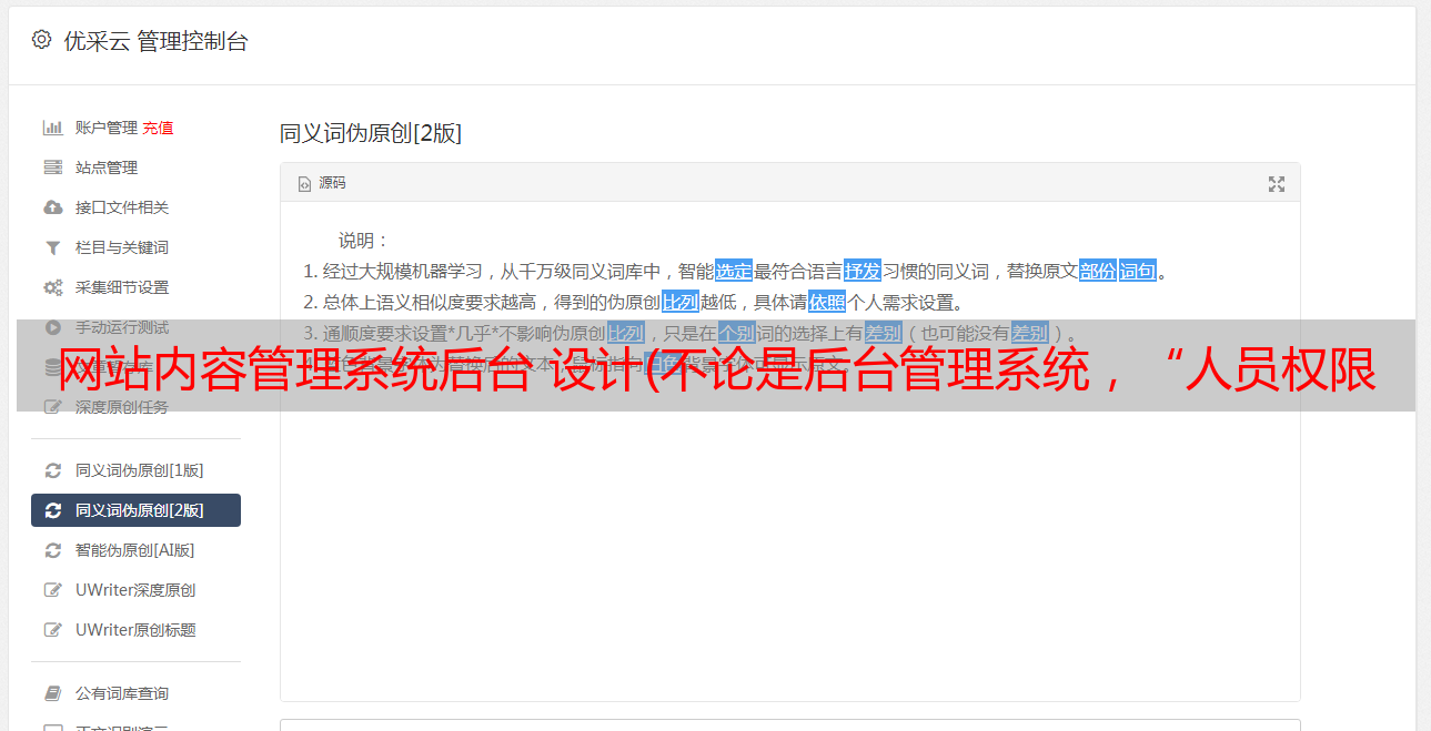 优采云 发布时间: 2021-11-24 11:13网站内容管理系统后台 设计(不论是后台管理系统,“人员权限”始终是绕不开的话题)