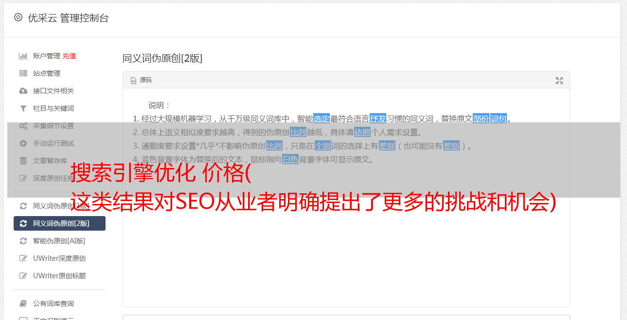 优采云 发布时间: 2021-11-24 23:34搜索引擎优化 价格(