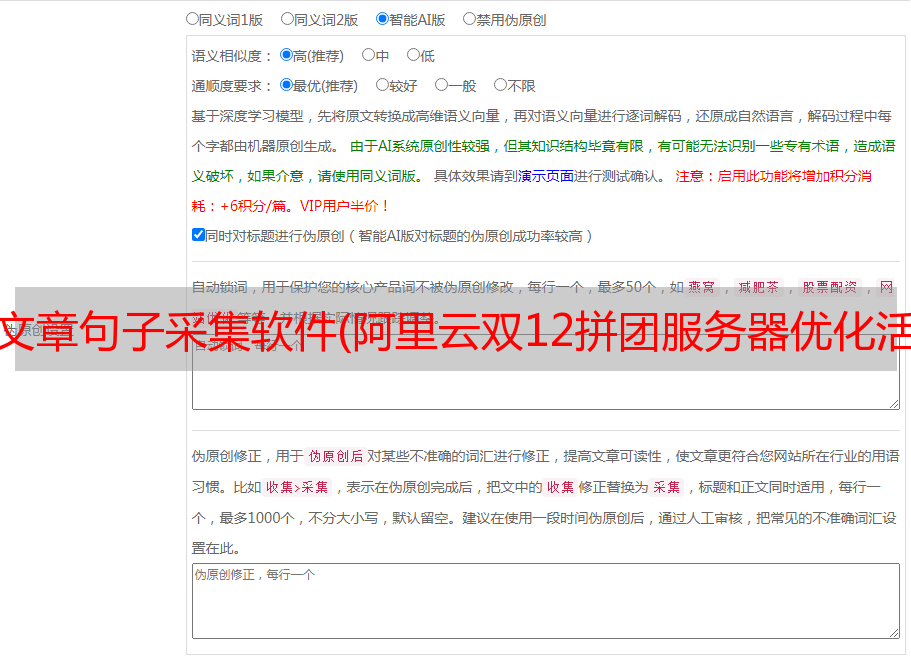 文章句子采集软件(阿里云双12拼团服务器优化活动1核2G/1年/89元)