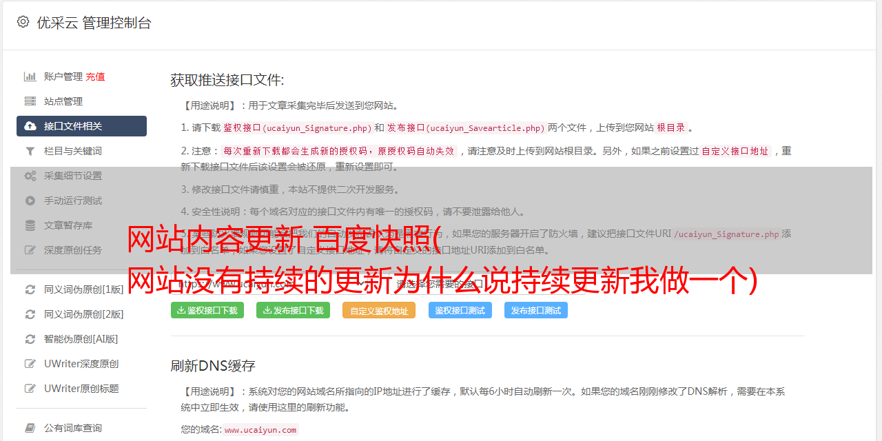 网站百度快照不更新的原因1.网站内容都是伪原创或大量采集这对搜索引擎来说很重要。内容占排名。这是一个很大的因素,但它也与百度快照有很大关系。如果您网站的内容是其他人的,那么在您的网站上这样做有什么意义呢?搜索引擎只会把你的网站当作垃圾场,更不用说百度了。快照已更新。2 网站 没有持续更新。为什么说持续更新呢?我会做一个小实验。如果网站更新频繁,百度快照也会形成这样的频繁规则。3 定期调整网站标题,包括栏目标题和内容页。很多站长对此都深有体会。我也有很深的体会。有时我认为改变它是不合适的。而且,这对你的网站非常不利。上次修改百度收录的内容页标题到现在为止,百度快照都没有帮我更新,这篇文章文章也有几个外链,但是百度快照没有更新,所以就算错了,只要百度收录错了,一定要修改一下,让它慢慢安定下来。4 网站的内部结构进行了*敏*感*词*的调整。这是搜索引擎最烦的事情,因为你换了网站的框架搜索引擎,还得给你的页面重新评分,修改数据库。这会大大影响你的网站的更新 快照5 网站蜘蛛来的时候无法访问空间。如果您发现蜘蛛来访问您的网站时无法访问您的网站,那就像您骗过我一次一样。