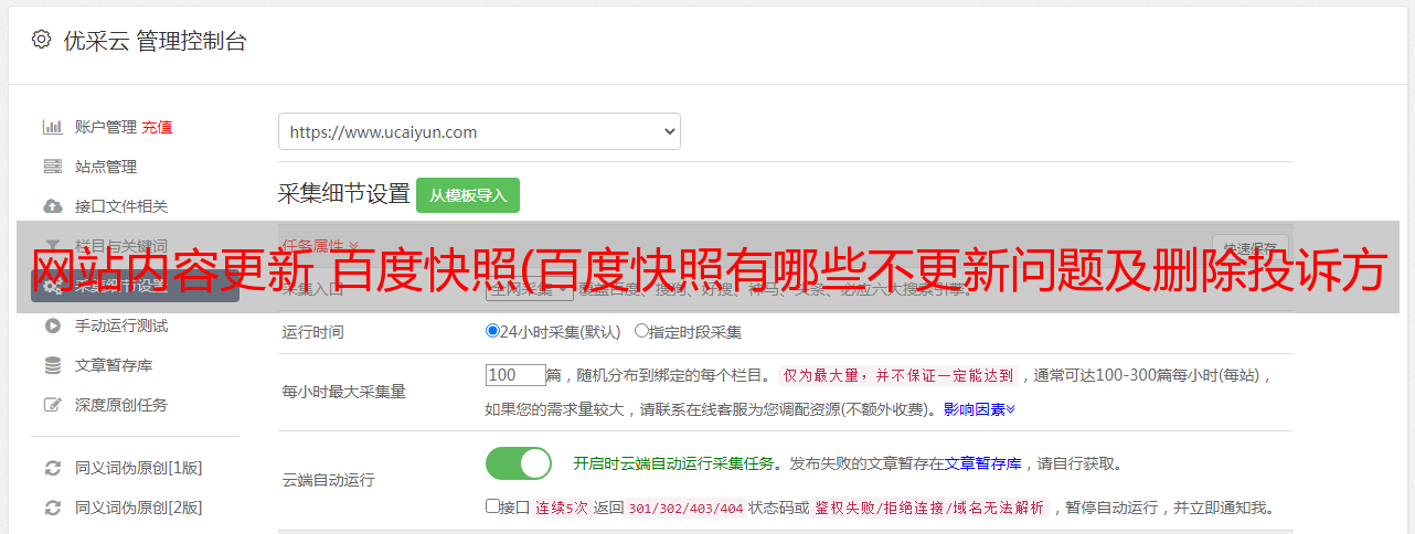 优采云 发布时间: 2021-11-25 06:01网站内容更新 百度快照(百度快照有哪些不更新问题及删除投诉方法?)