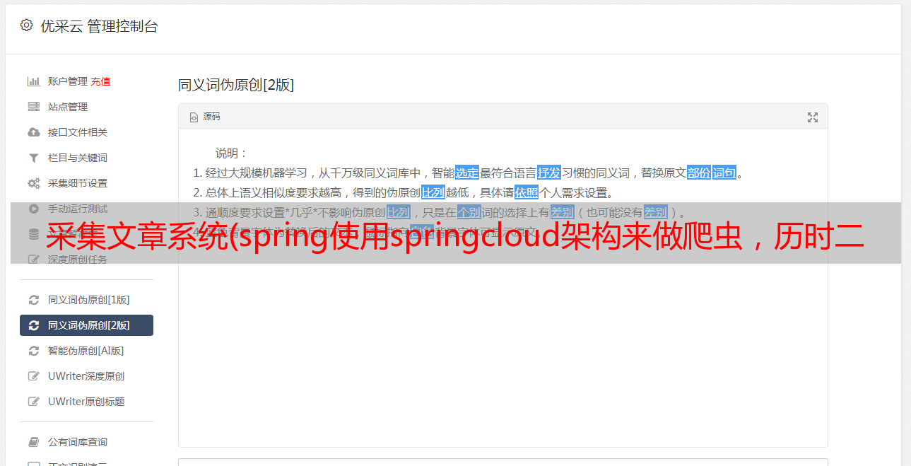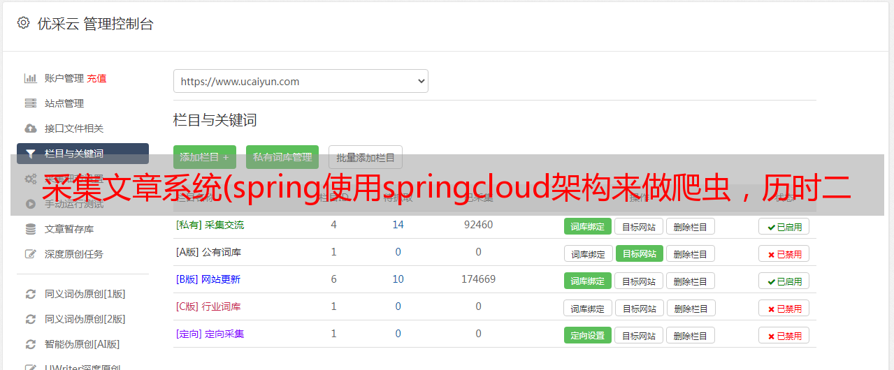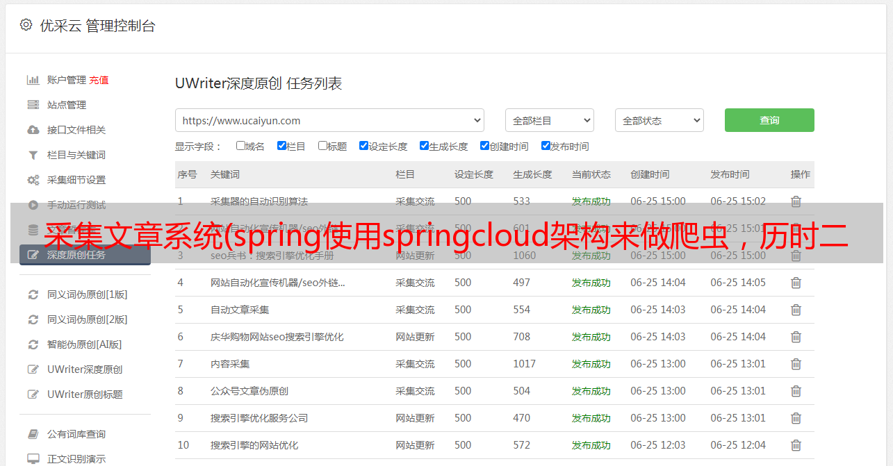 优采云 发布时间: 2021-11-25 12:11采集文章系统(spring使用springcloud架构来做爬虫,历时二十多天,终于搞定)