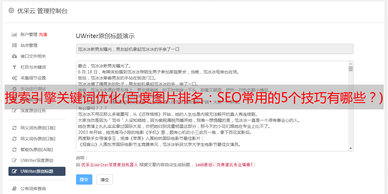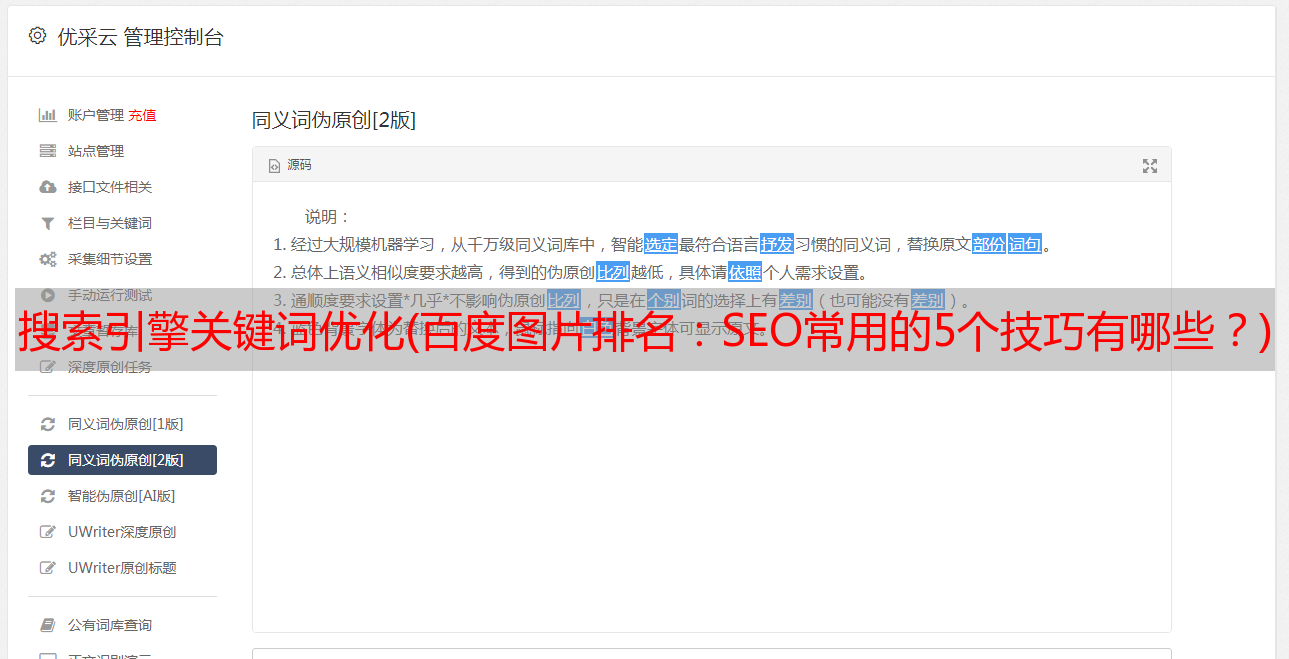 优采云 发布时间: 2021-11-25 14:09搜索引擎关键词优化(百度图片排名:SEO常用的5个技巧有哪些?)