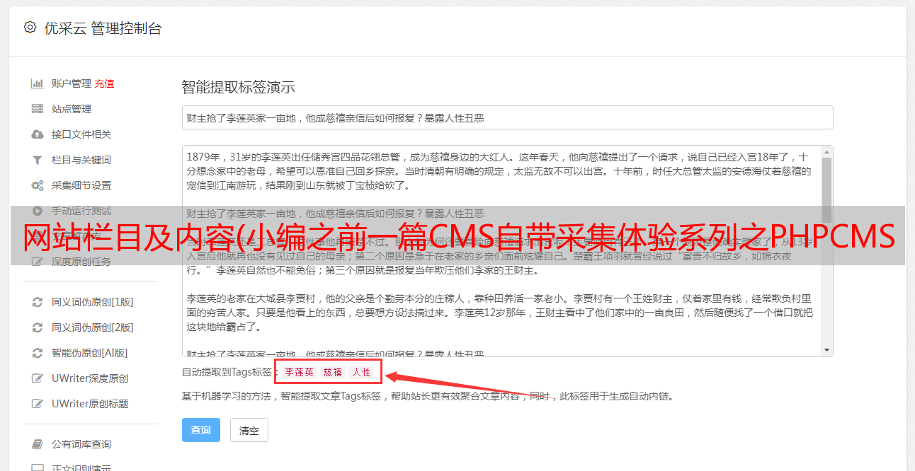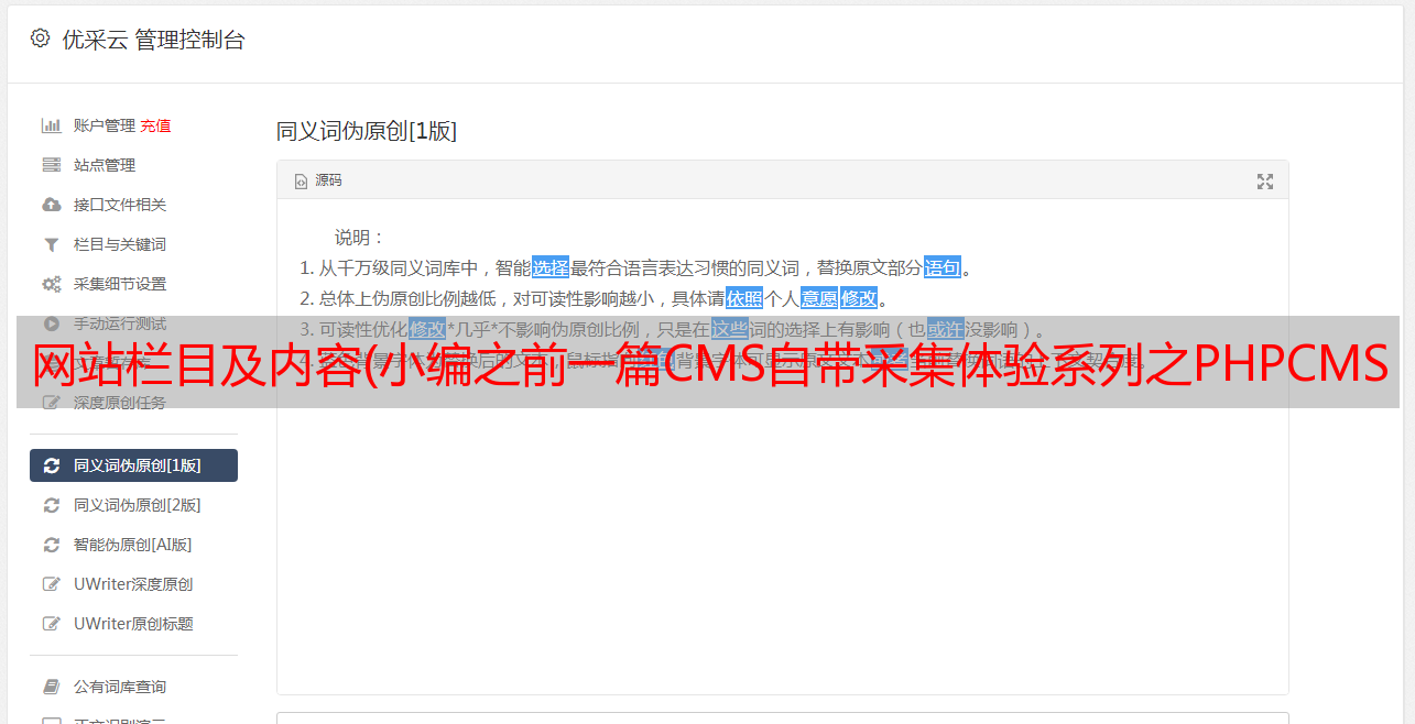 优采云 发布时间: 2021-11-26 09:15网站栏目及内容(小编之前一篇CMS自带采集体验系列之PHPCMSV9一篇)