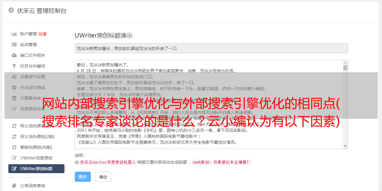 优采云 发布时间: 2021-11-27 00:01网站内部搜索引擎优化与外部搜索引擎优化的相同点(