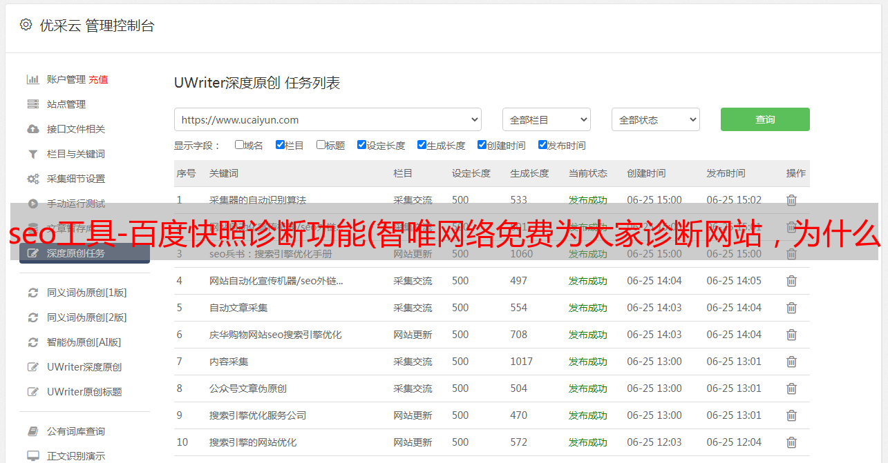 优采云 发布时间: 2021-11-27 03:24seo工具-百度快照诊断功能(智唯网络免费为大家诊断网站,为什么要进行网站诊断?