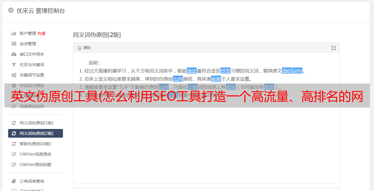 优采云 发布时间: 2021-11-27 04:07英文伪原创工具(怎么利用SEO工具打造一个高流量、高排名的网站)