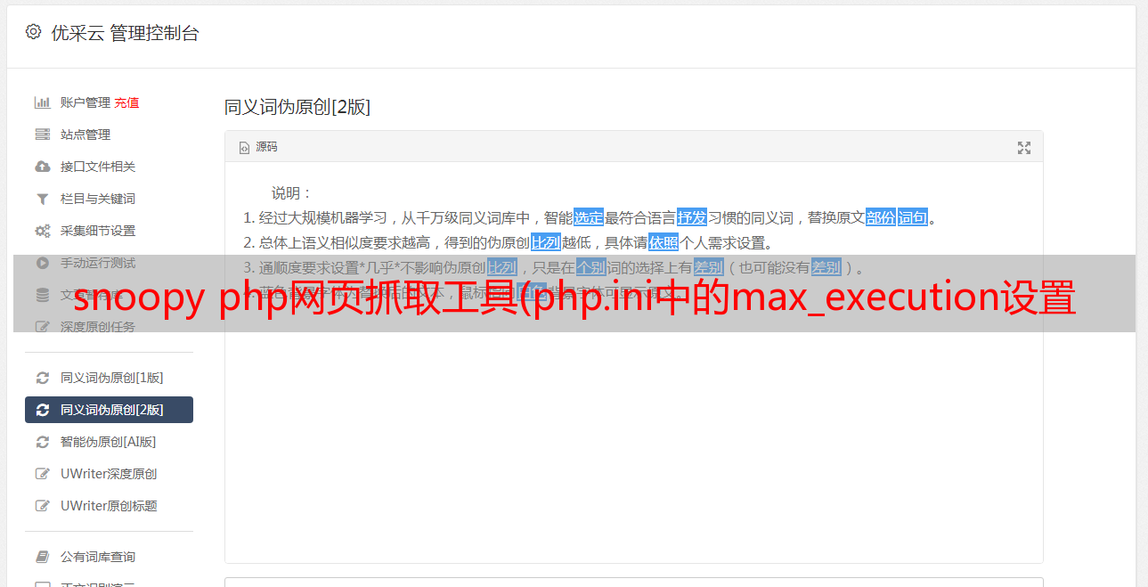 优采云 发布时间: 2021-11-27 11:07snoopy php网页抓取工具(php.ini中的max_execution设置设置的大点软件)