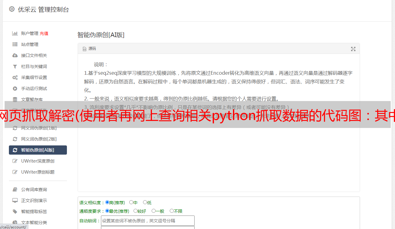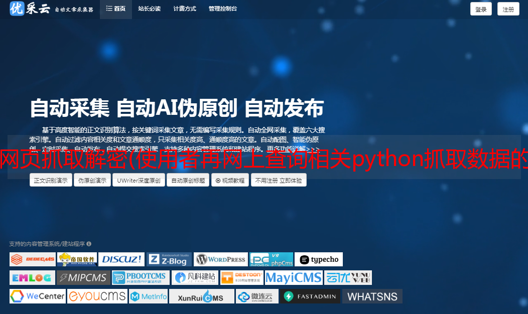 优采云 发布时间: 2021-11-27 18:22网页抓取解密(使用者再网上查询相关python抓取数据的代码图:其中cookie部分
