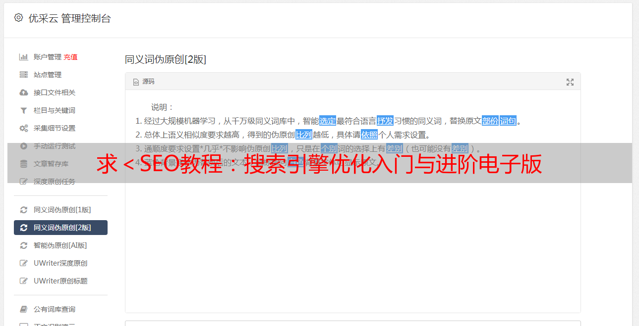优采云 发布时间: 2021-03-31 22:04求<SEO教程:搜索引擎优化入门与进阶电子版