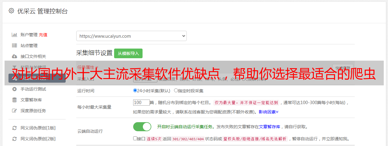 基于优采云分布式云采集器框架的新型云在线智能采集器/ 采集器可帮助用户快速获取大量标准化的Web数据。