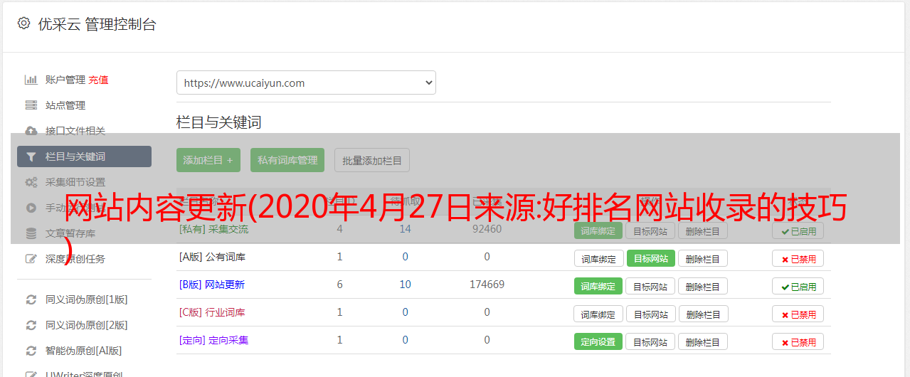 优采云 发布时间: 2021-11-29 00:18网站内容更新(2020年4月27日来源:好排名网站收录的技巧