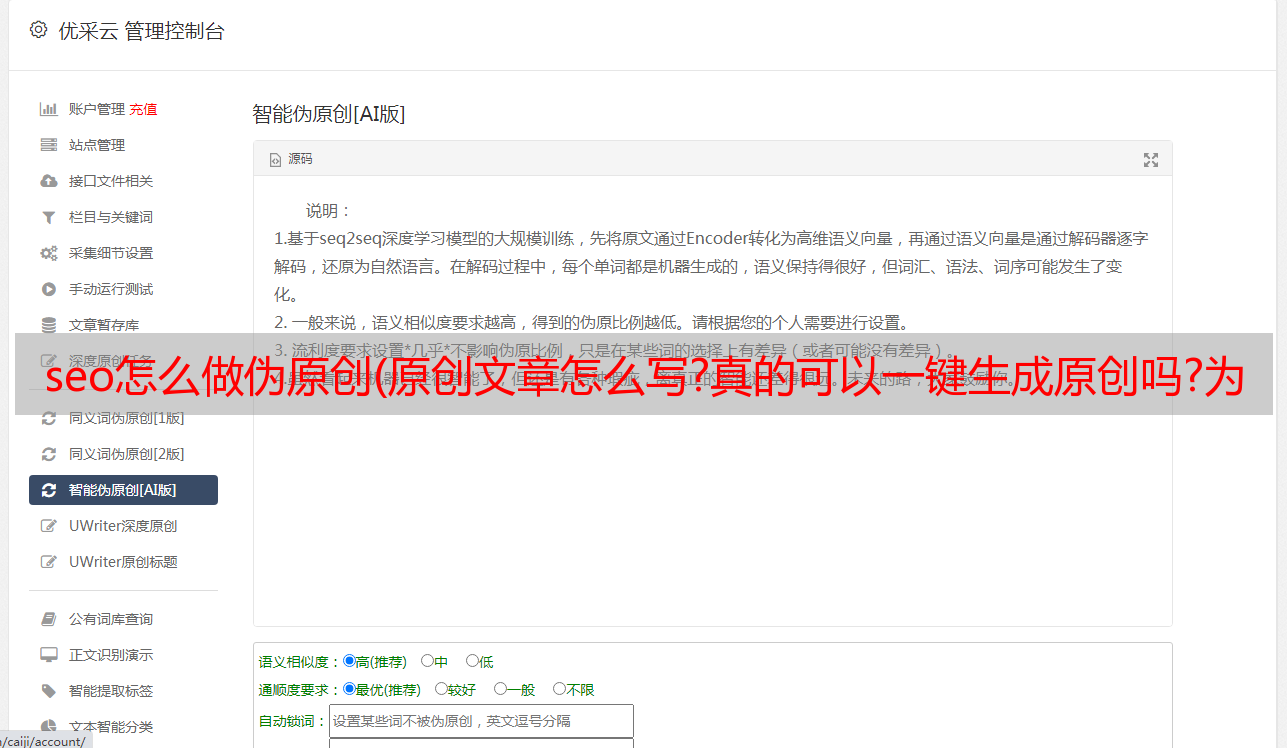 优采云 发布时间: 2021-11-29 12:06seo怎么做伪原创(原创文章怎么写?真的可以一键生成原创吗?为什么某些网站不做伪原创?)