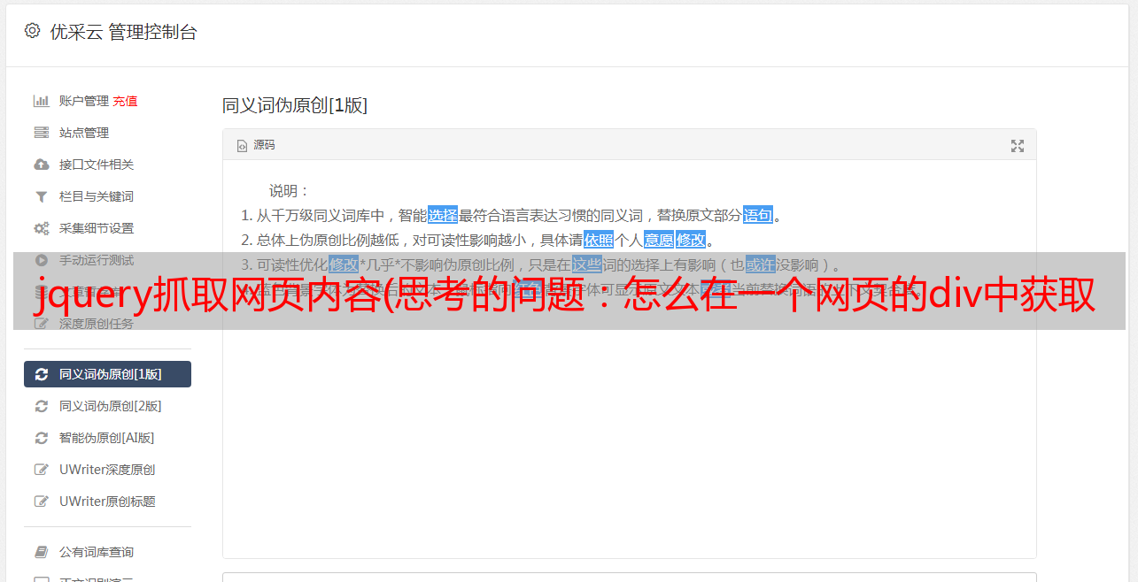 优采云 发布时间: 2021-11-29 14:17jquery抓取网页内容(思考的问题:怎么在一个网页的div中获取部分内容)