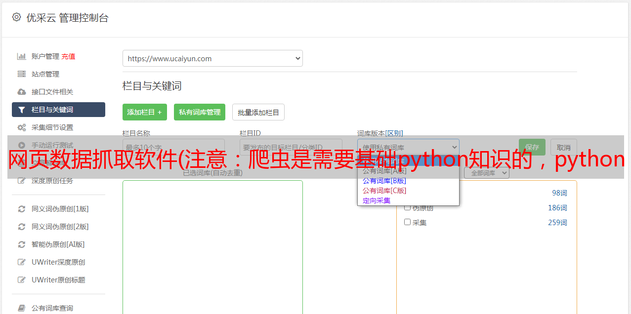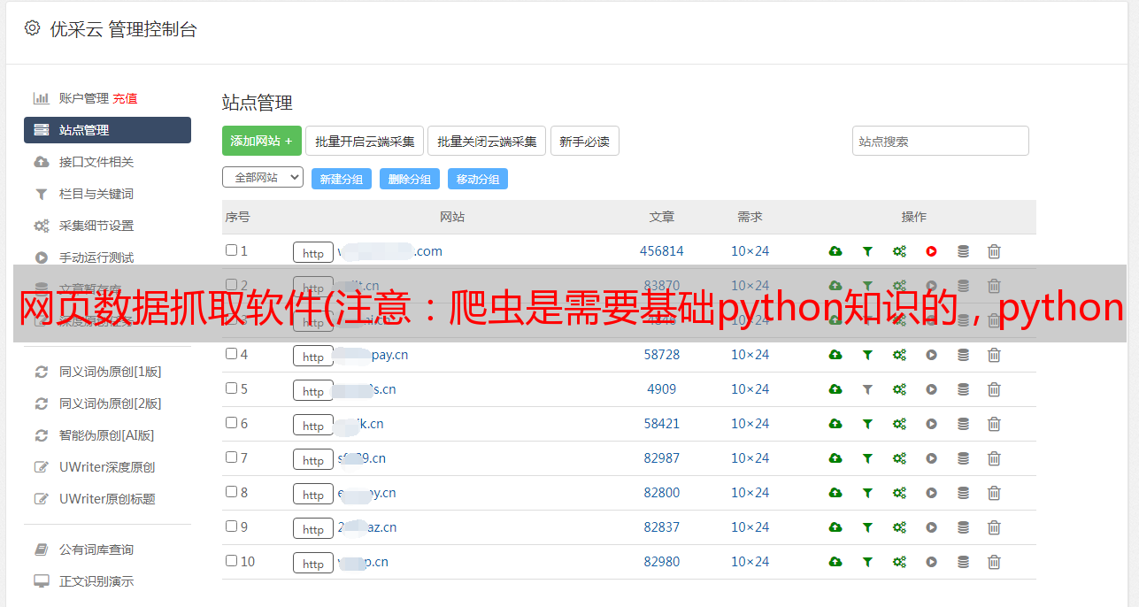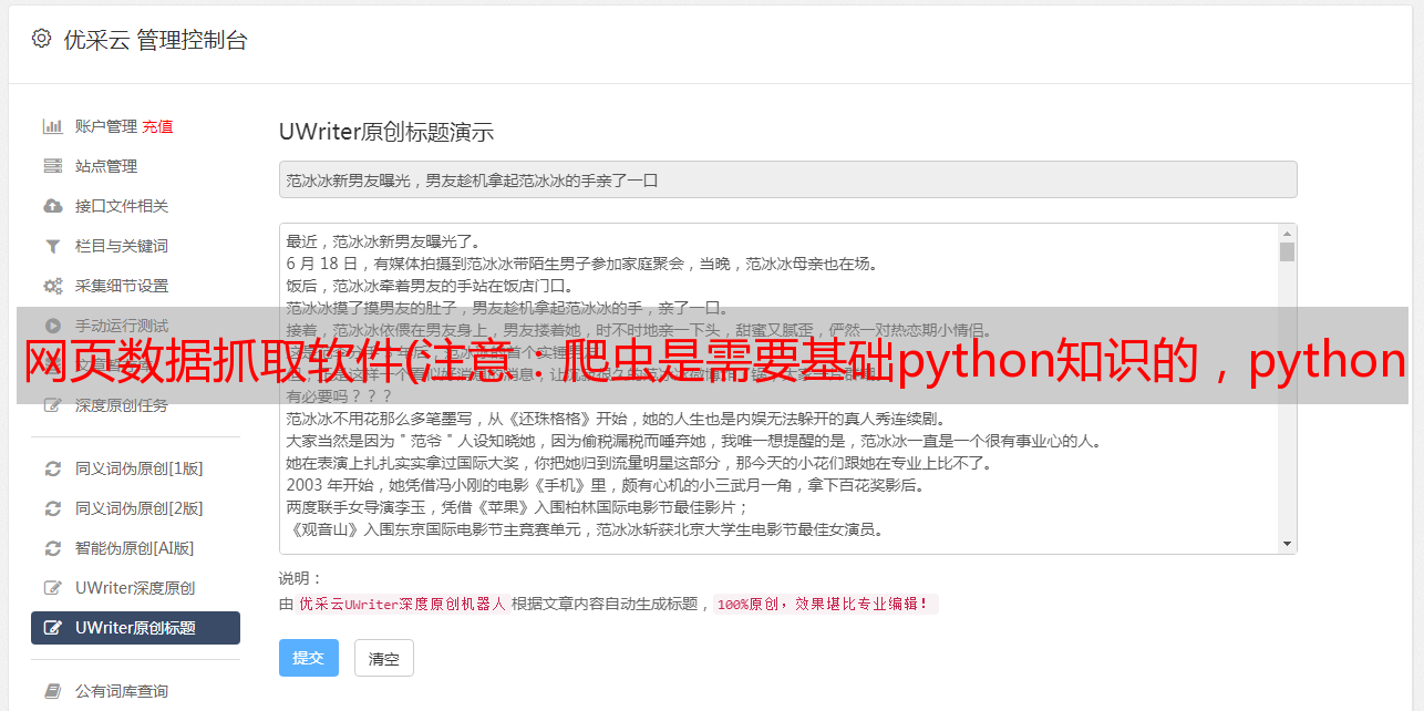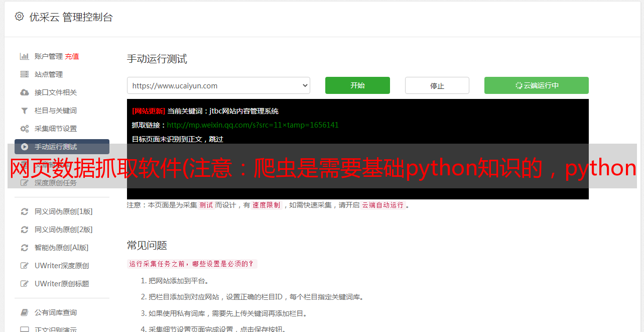 优采云 发布时间: 2021-11-29 17:18网页数据抓取软件(注意:爬虫是需要基础python知识的,python入门使用