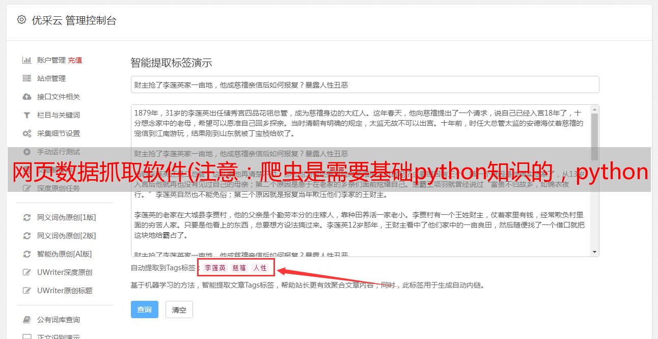 网页数据抓取软件(注意:爬虫是需要基础python知识的,python入门使用 )