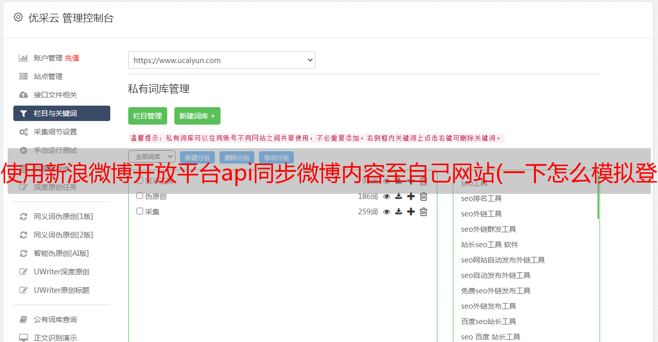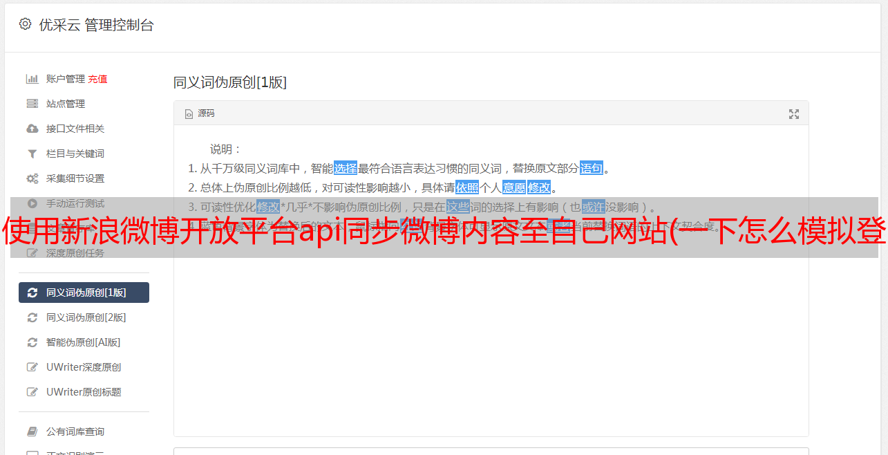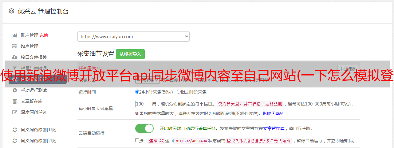 优采云 发布时间: 2021-12-01 08:14使用新浪微博开放平台api同步微博内容至自己网站(一下怎么模拟登陆新浪微博()(图))