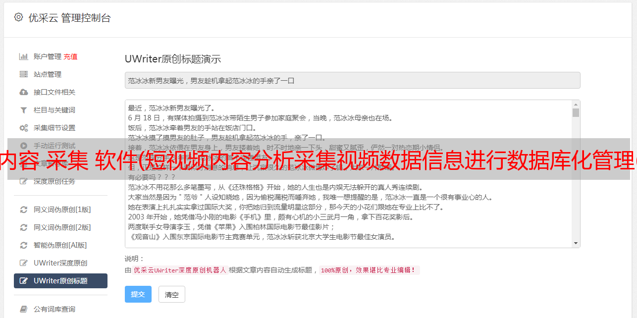 内容 采集 软件(短视频内容分析采集视频数据信息进行数据库化管理(组图) )