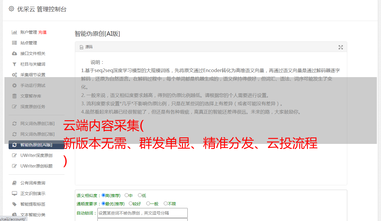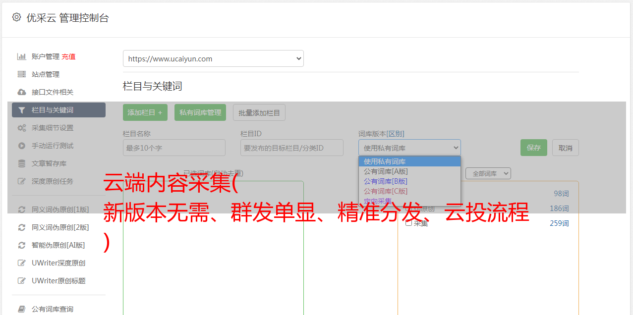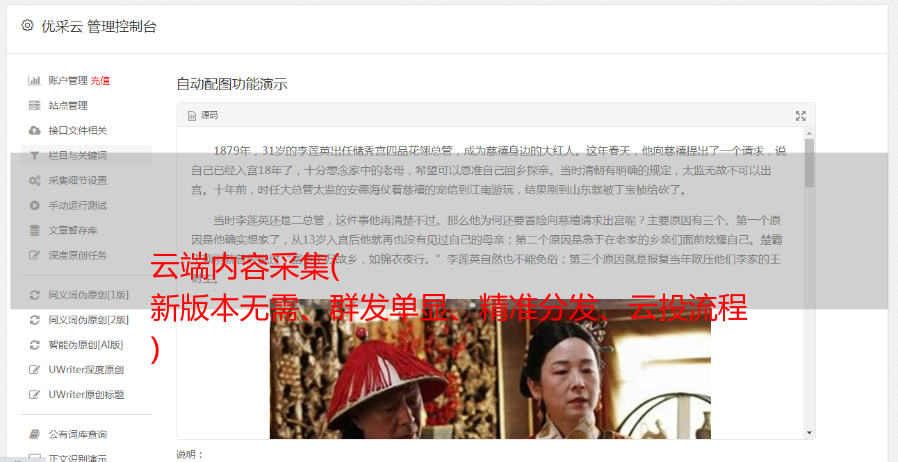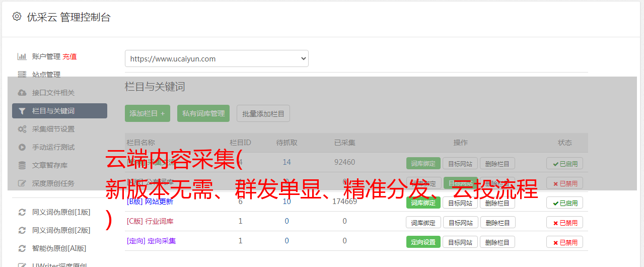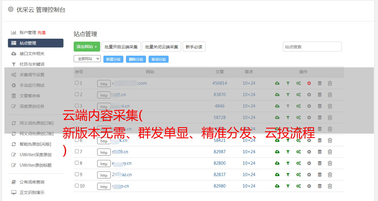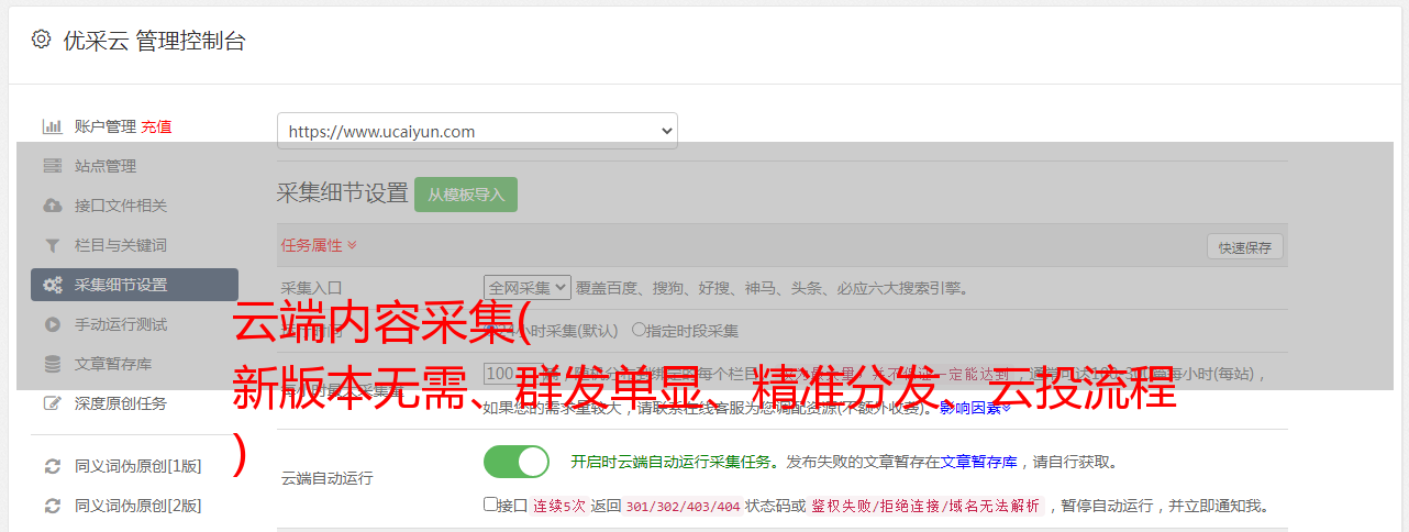 云端内容采集( 新版本无需、群发单显、精准分发、云投流程 )