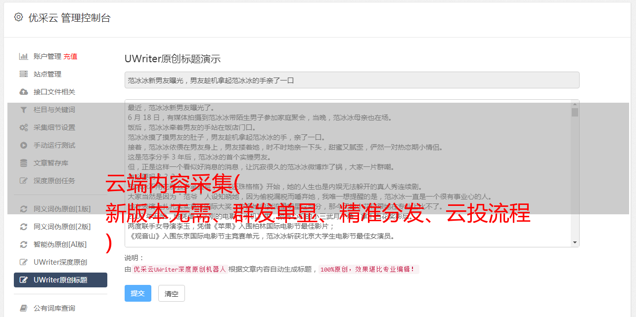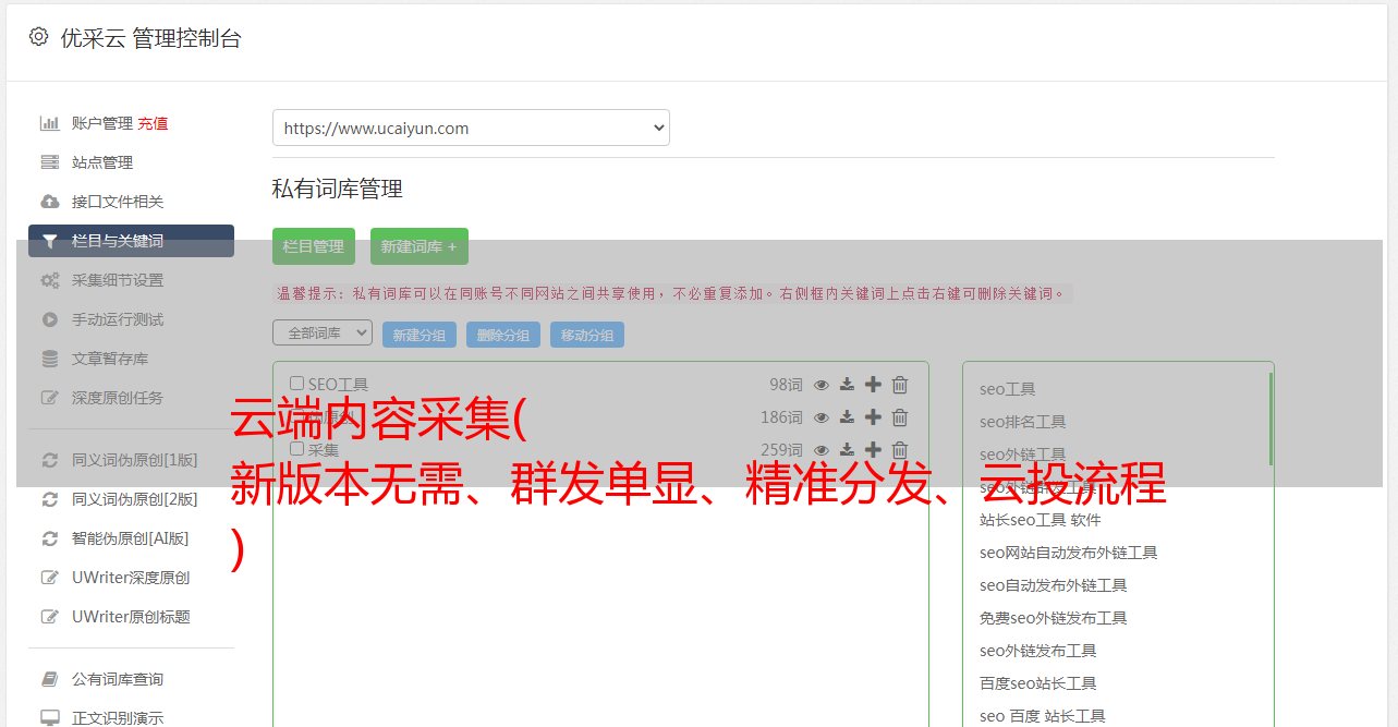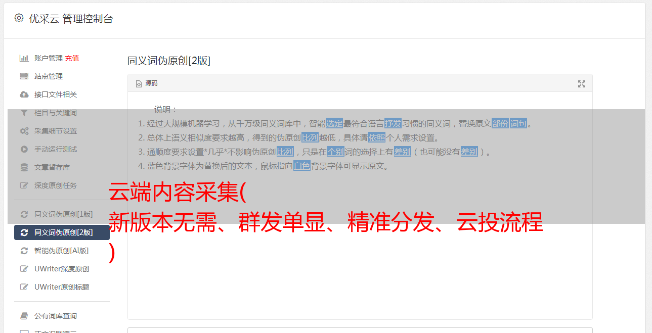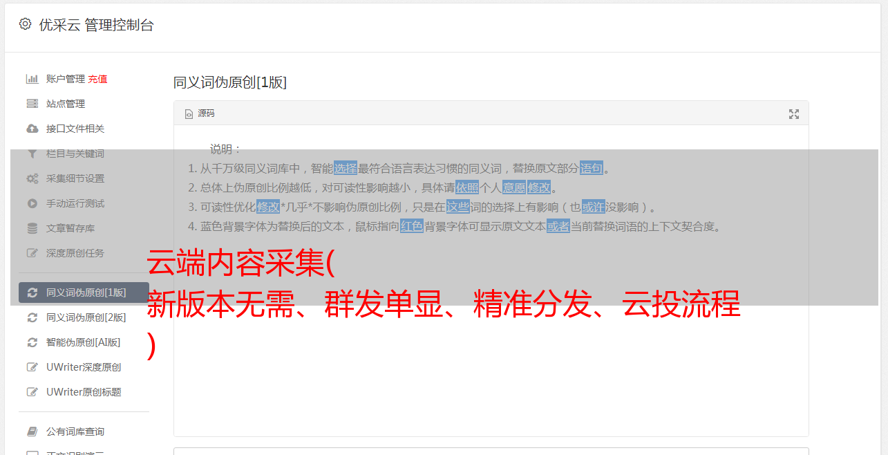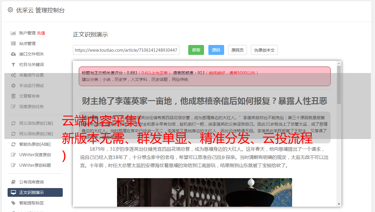云端内容采集( 新版本无需、群发单显、精准分发、云投流程 )