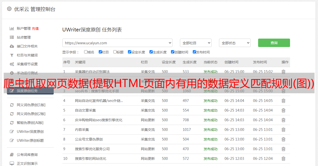 优采云 发布时间: 2021-12-03 05:47爬虫抓取网页数据(提取HTML页面内有用的数据定义匹配规则(图))
