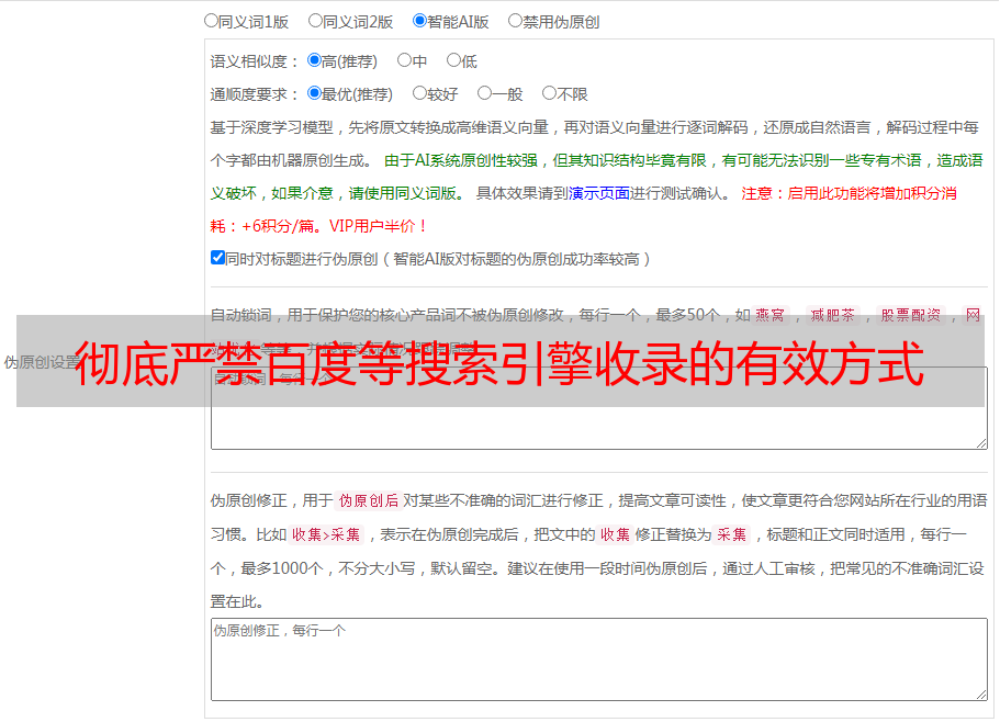 既然不能直接严禁抓取搜索引擎禁止的方式优化网站,那就干脆严禁百度蜘蛛等搜索引擎访问,思路是:判断user_agent,如果是百度蜘蛛、谷歌机器人等搜索引擎的user_agent,就返回403或则404,这样百度等搜索引擎都会觉得这个网站无法打开或则不存在,自然也就不会收录了。