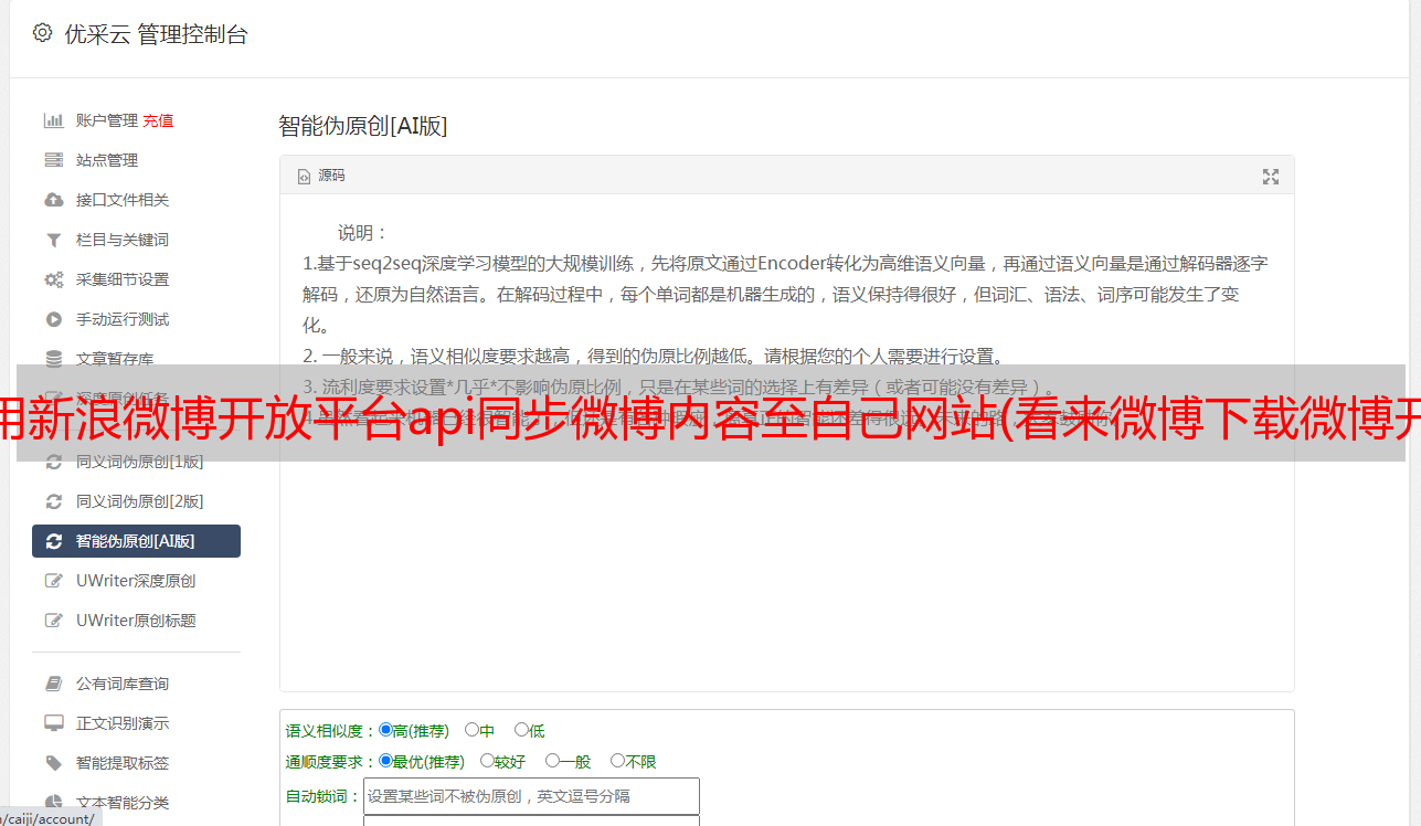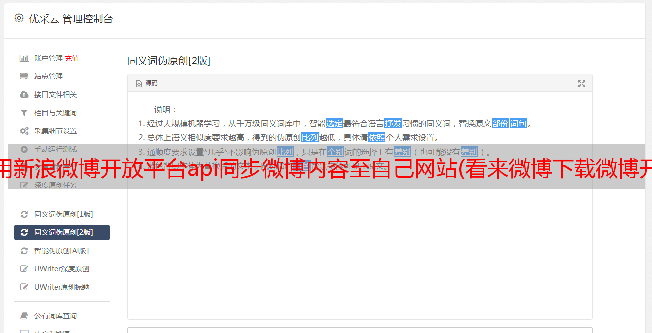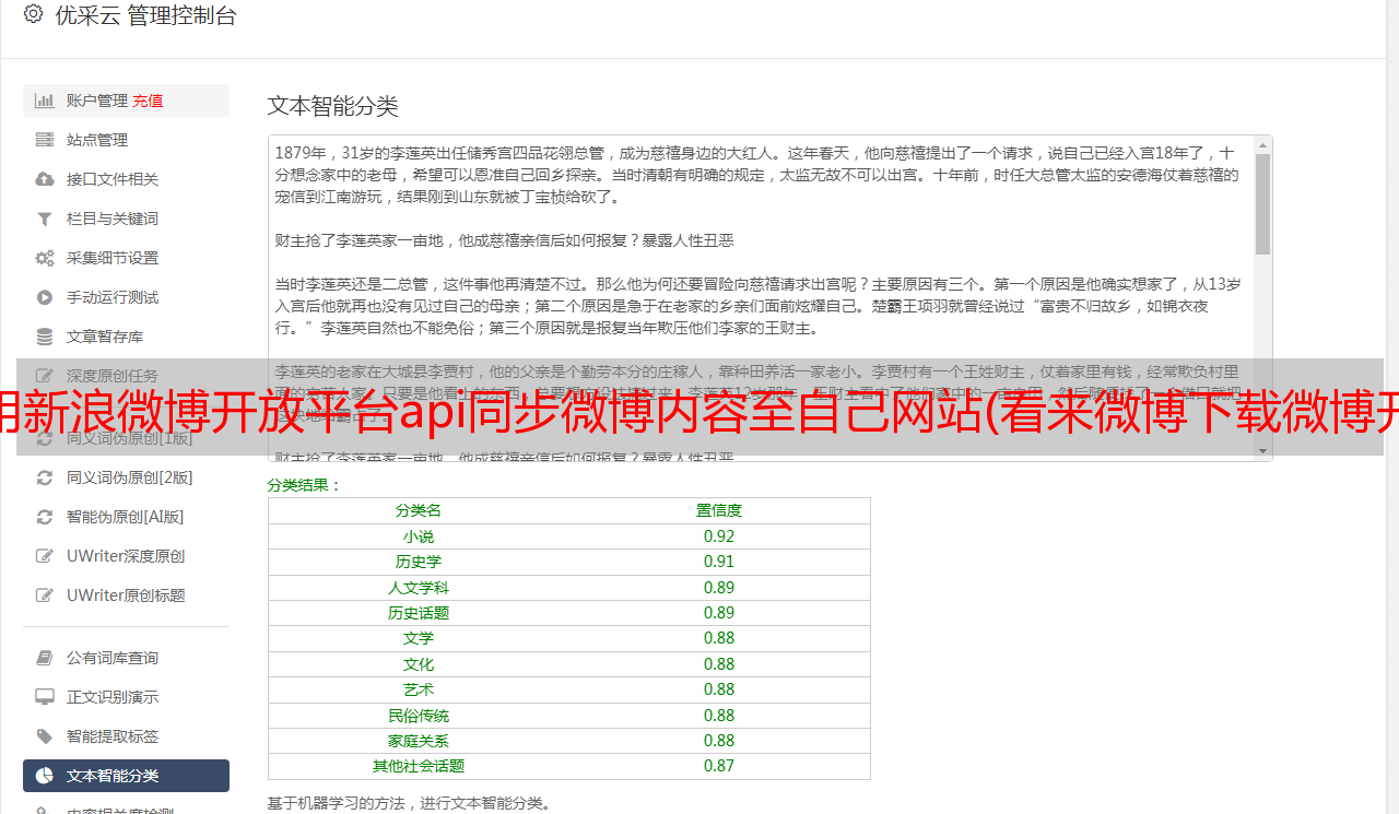 优采云 发布时间: 2021-12-03 12:11使用新浪微博开放平台api同步微博内容至自己网站(看来微博下载微博开放平台.java类A*敏*感*词*ey和AppSecret)