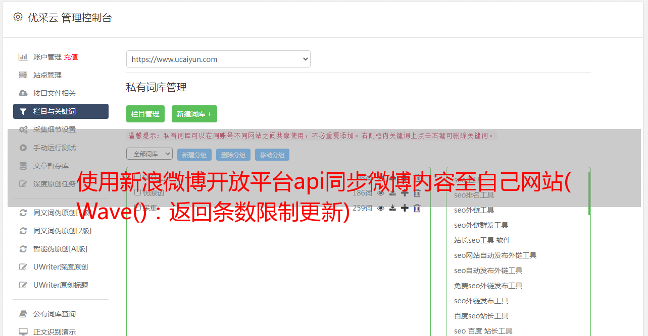 优采云 发布时间: 2021-12-03 12:16使用新浪微博开放平台api同步微博内容至自己网站(