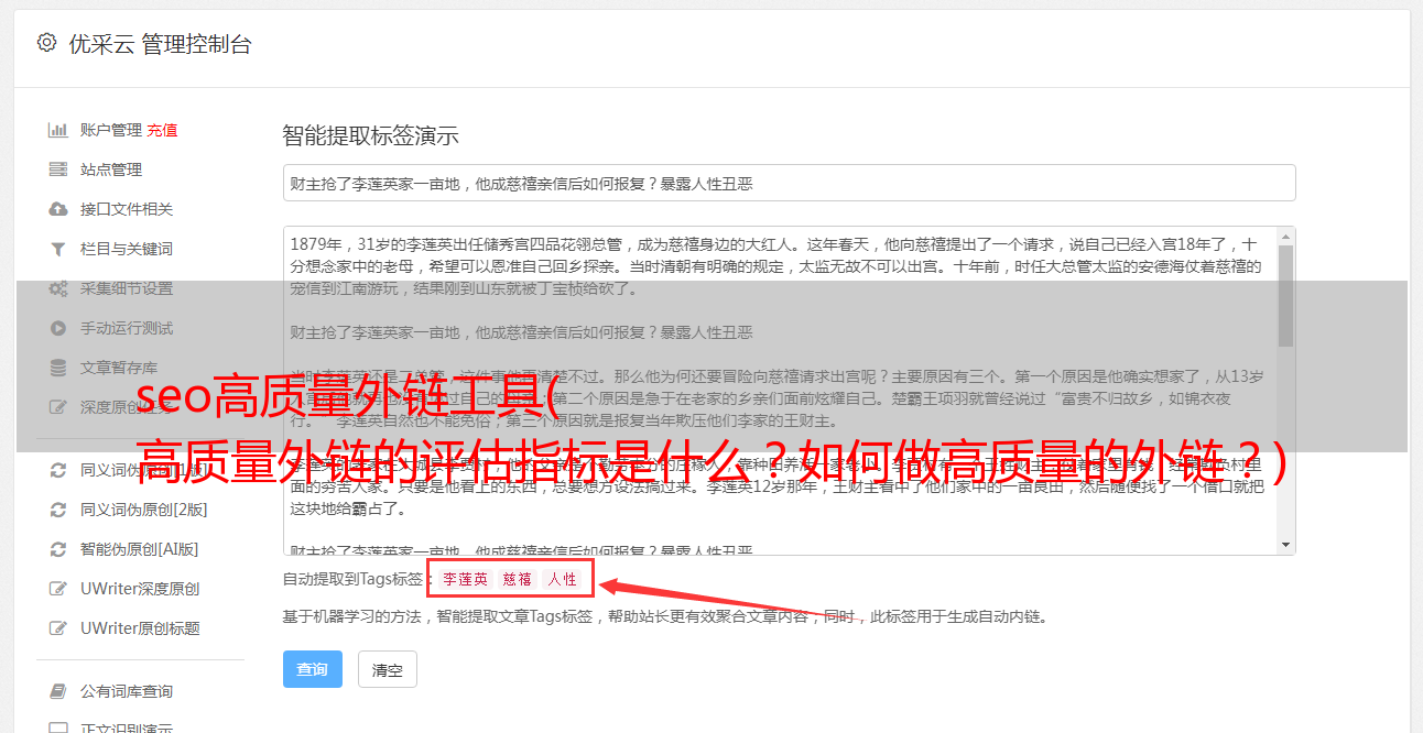优采云 发布时间: 2021-12-04 07:00seo高质量外链工具(
