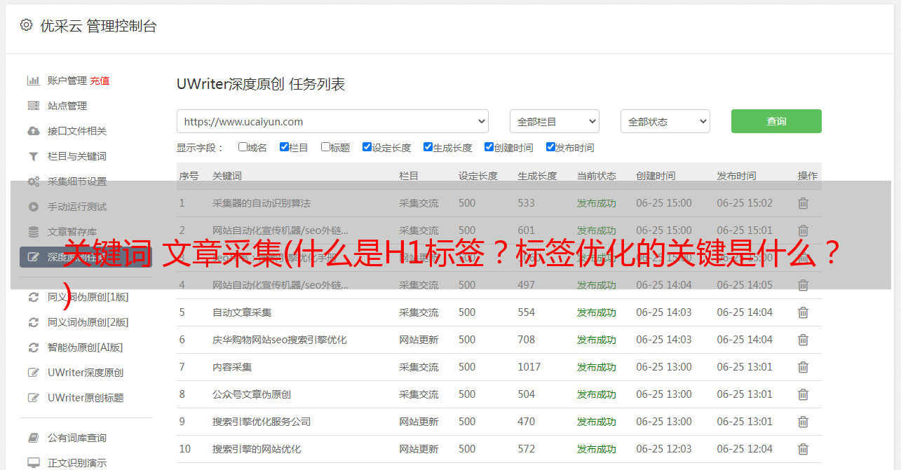1、 只需将关键词导入到采集相关的关键词文章,就可以同时创建几十个或几百个采集任务(一个任务可支持上传1000个关键词),支持过滤关键词