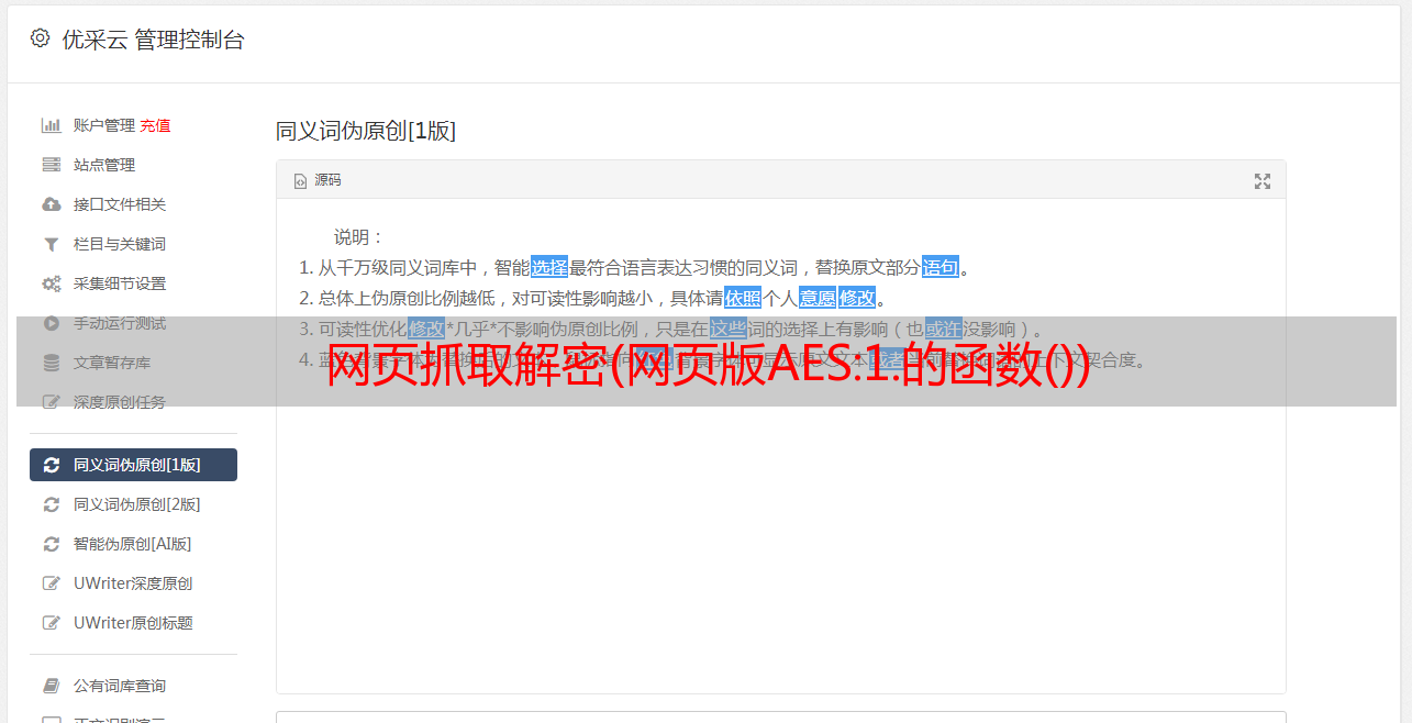优采云 发布时间: 2021-12-04 12:01网页抓取解密(网页版AES:1.的函数())
