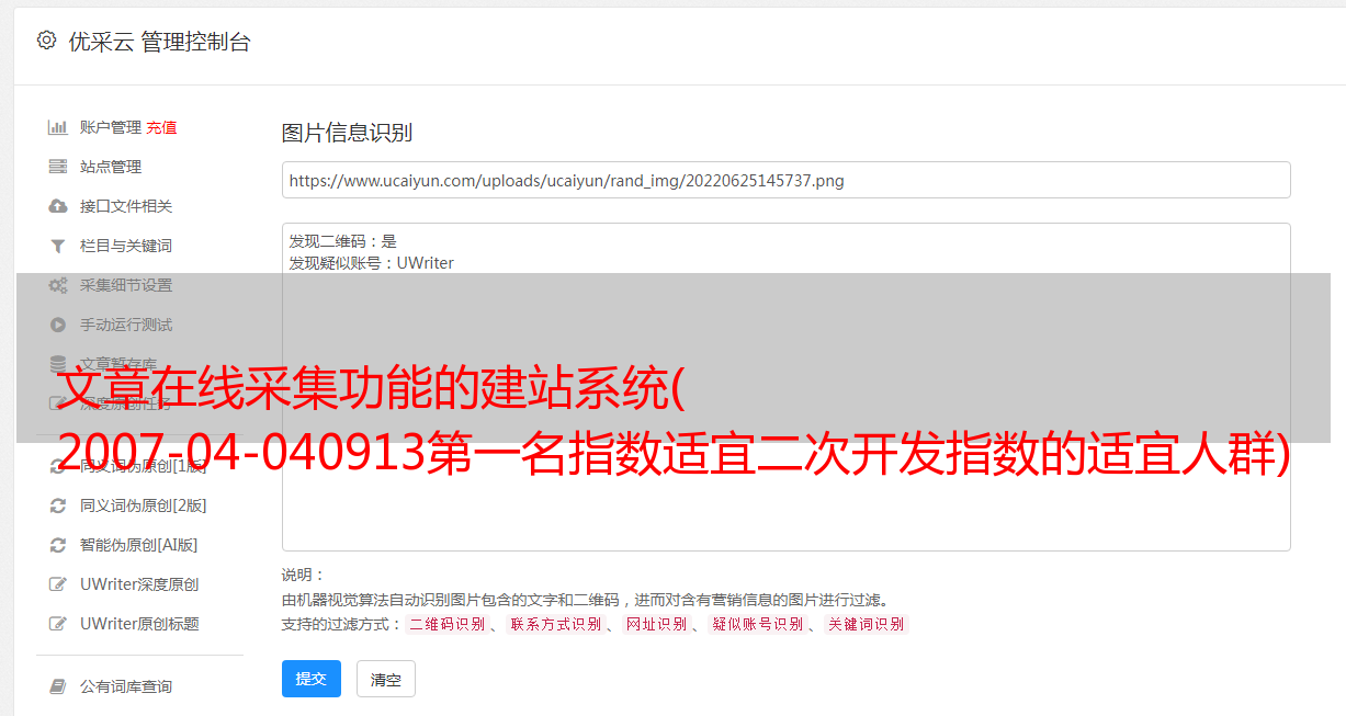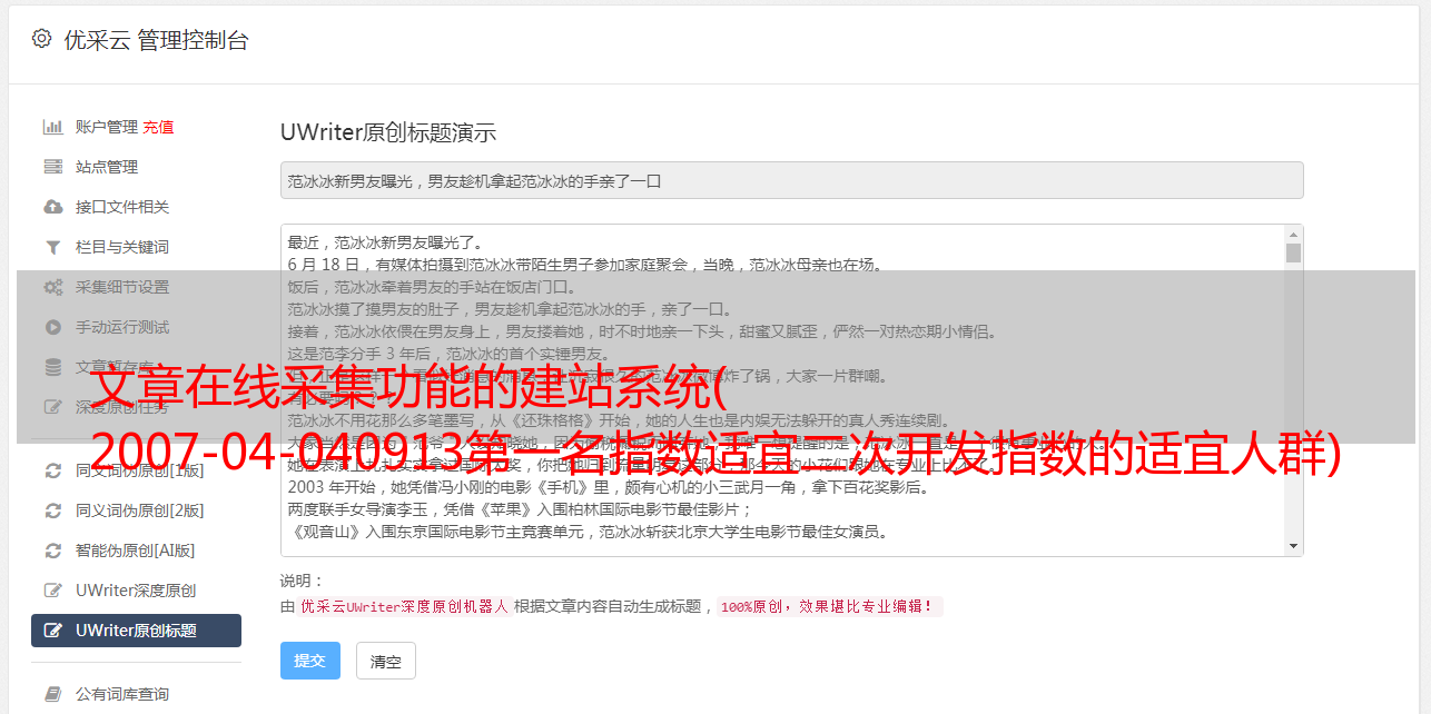 文章在线采集功能的建站系统( 2007-04-040913第一名指数适宜二次开发指数的适宜人群)
