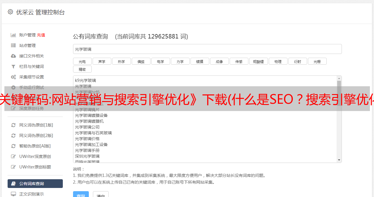 优采云 发布时间: 2021-12-04 18:04《seo关键解码:网站营销与搜索引擎优化》下载(什么是SEO?搜索引擎优化(SearchEngineOptimizationOptimizationFriendly))
