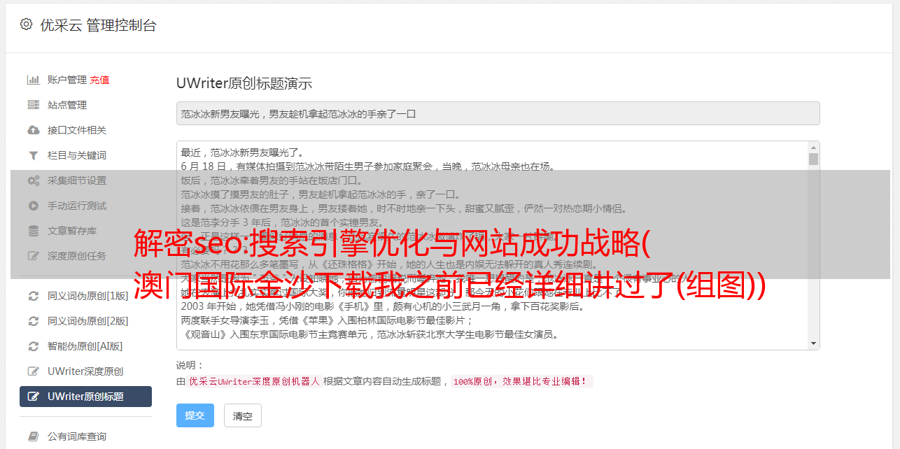 优采云 发布时间: 2021-12-04 19:26解密seo:搜索引擎优化与网站成功战略(