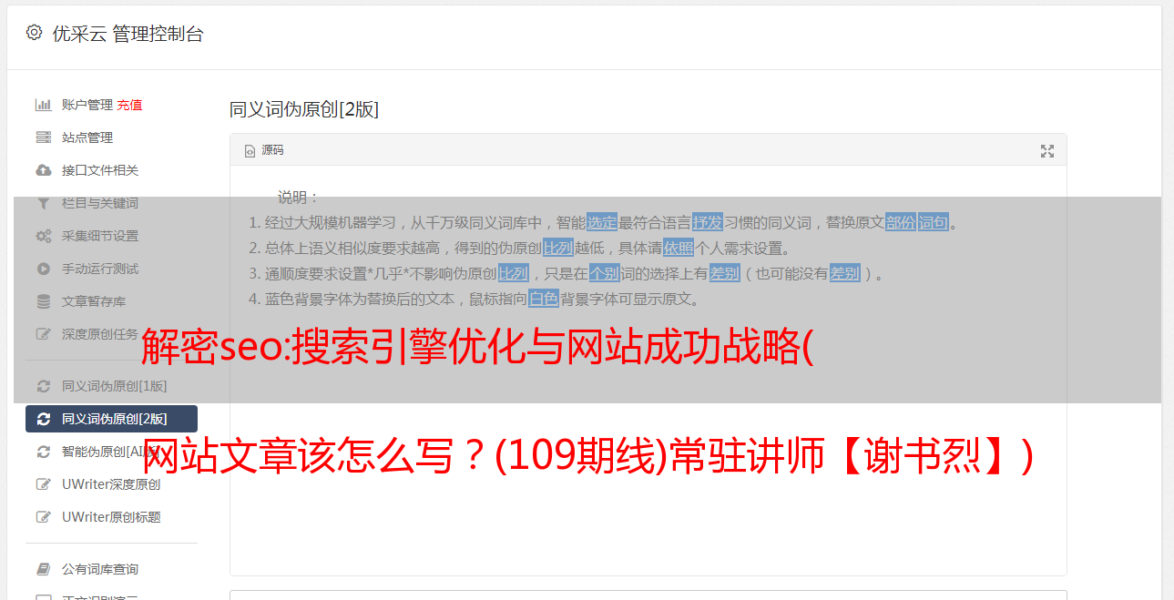 解密seo:搜索引擎优化与网站成功战略( 网站文章该怎么写?(109期线)常驻讲师【谢书烈】)