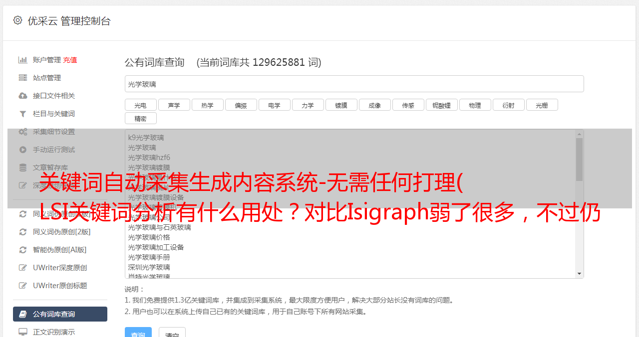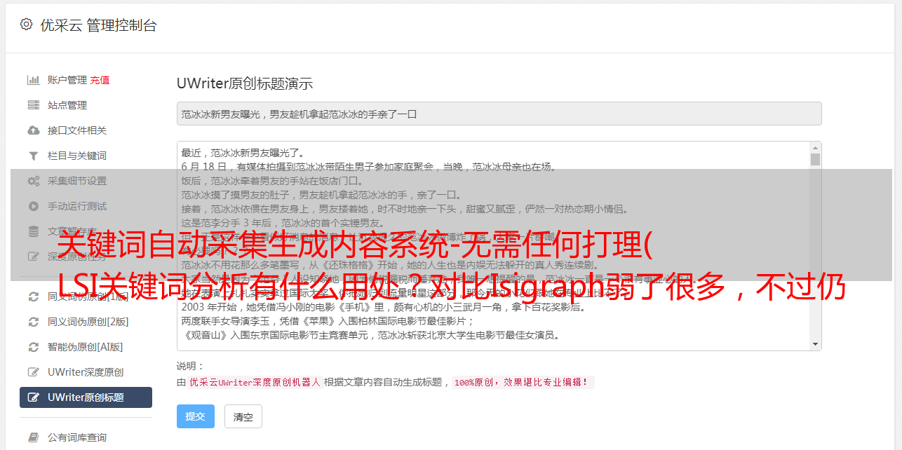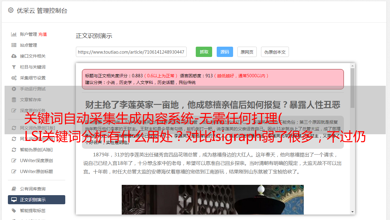关键词自动采集生成内容系统-无需任何打理( LSI关键词分析有什么用处?对比Isigraph弱了很多,不过仍然值得推荐)