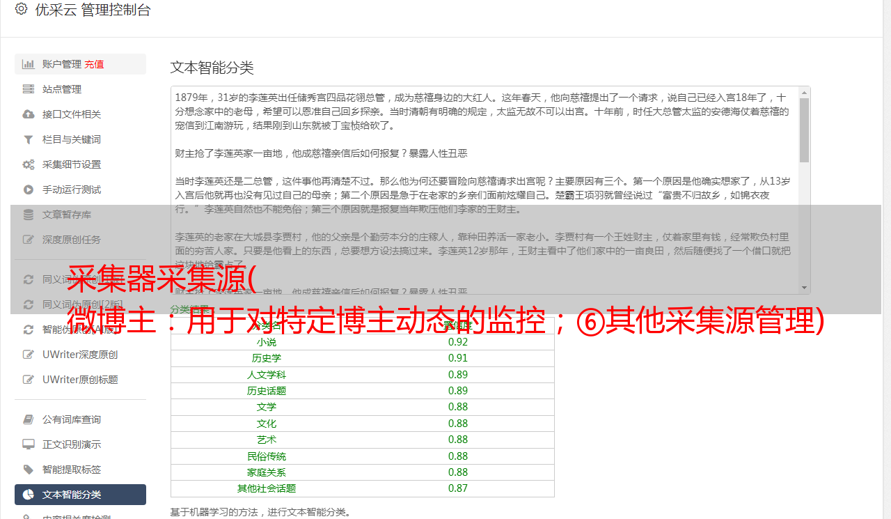 采集器采集源( 微博主:用于对特定博主动态的监控;⑥其他采集源管理)
