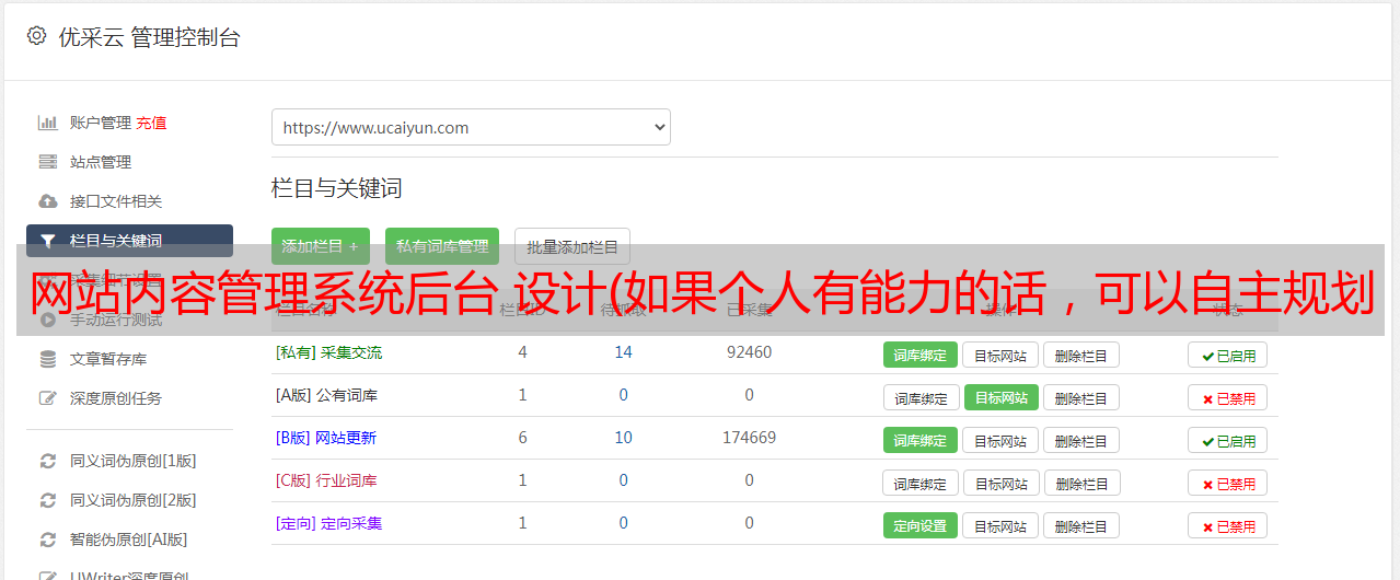 优采云 发布时间: 2021-12-05 03:05网站内容管理系统后台 设计(如果个人有能力的话,可以自主规划完成,具体开发步骤
