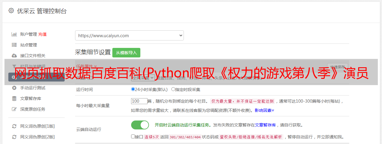 优采云 发布时间: 2021-12-05 18:07网页抓取数据百度百科(Python爬取《权力的游戏第八季》演员数据并分析数据爬取)