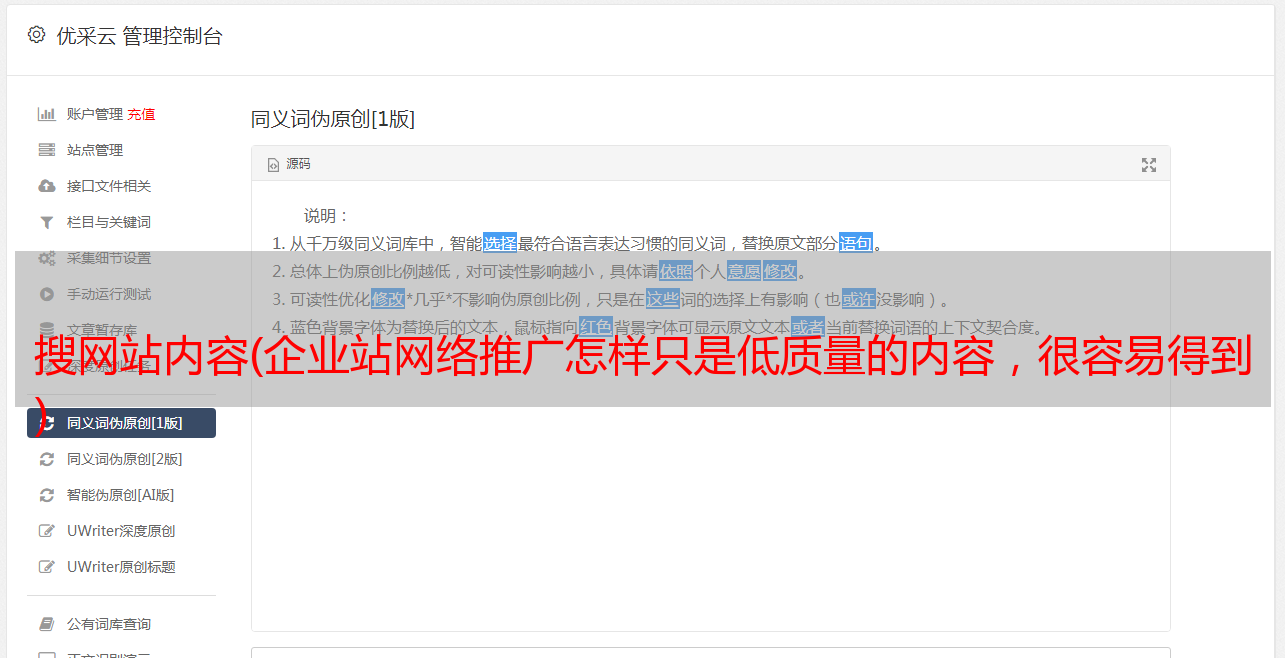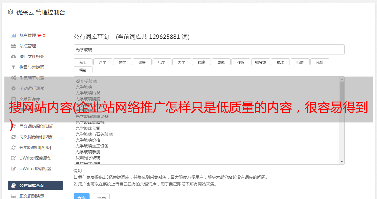 优采云 发布时间: 2021-12-05 22:03搜网站内容(企业站网络推广怎样只是低质量的内容,很容易得到