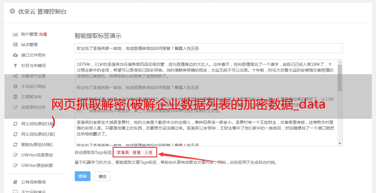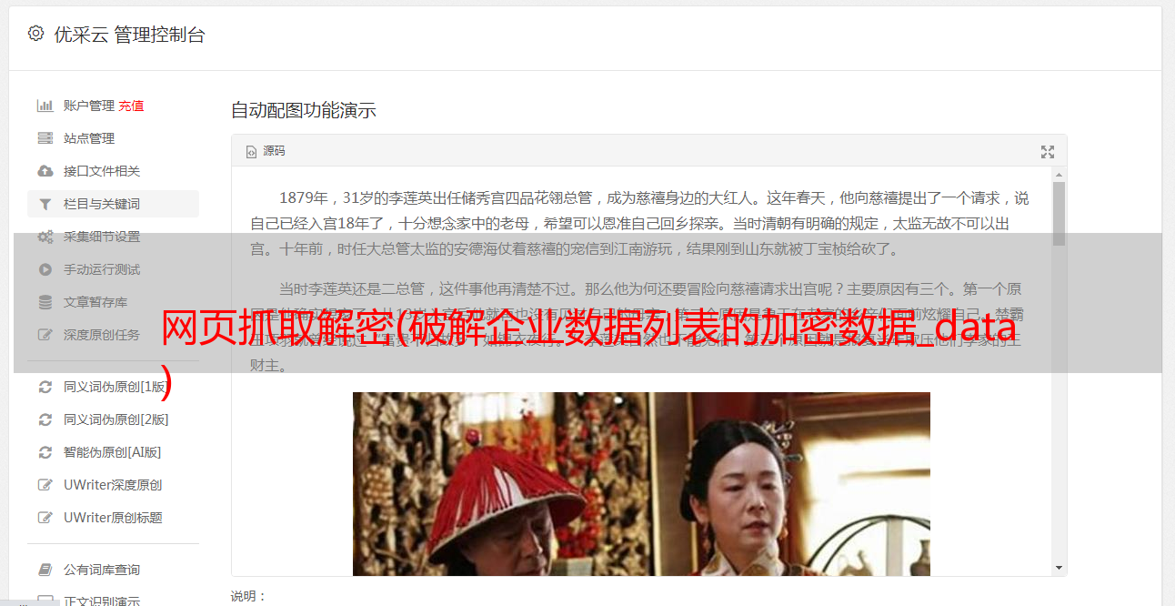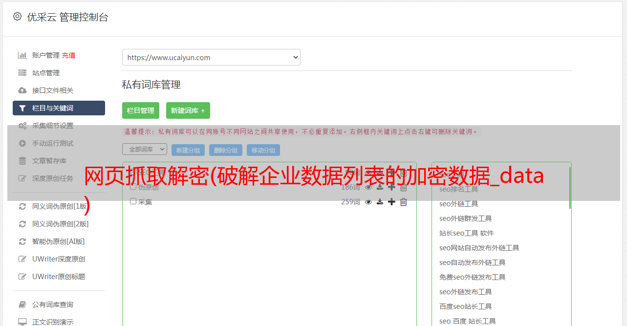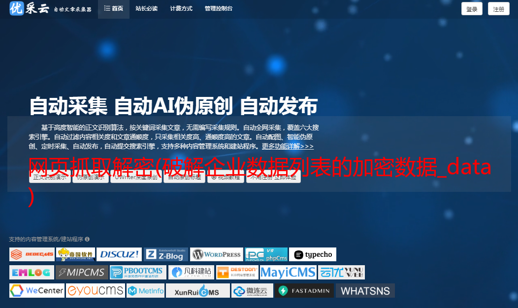 优采云 发布时间: 2021-12-06 00:16网页抓取解密(破解企业数据列表的加密数据_data