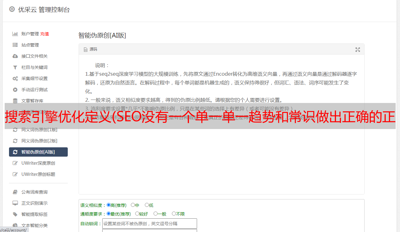 优采云 发布时间: 2021-12-06 09:26搜索引擎优化定义(SEO没有一个单一单一趋势和常识做出正确的正确选择