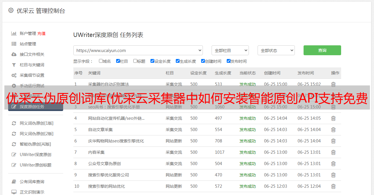 优采云伪原创词库(优采云采集器中如何安装智能原创API支持免费试用(组图))