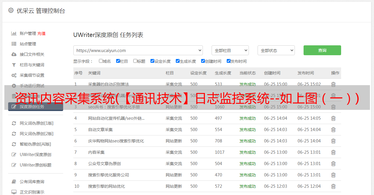 优采云 发布时间: 2021-12-07 10:03资讯内容采集系统(【通讯技术】日志监控系统--如上图(一))